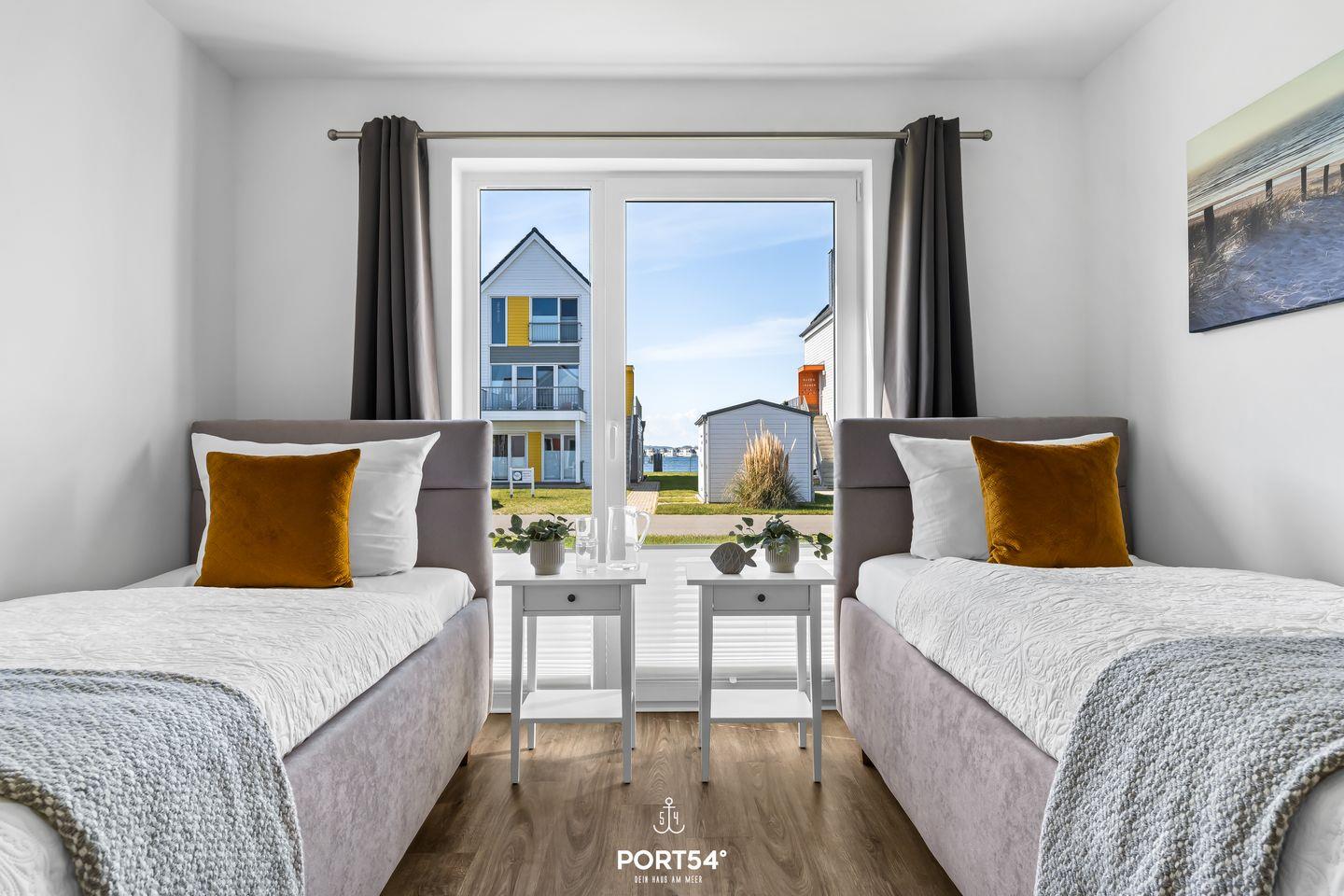 Die beiden Schlafzimmer bieten Dir ein bequemes Doppelbett (200 × 210 cm) sowie zwei gemütliche Einzelbetten (90 × 200 cm). Beide Schlafzimmer sind mit einem Kleiderschrank, Verdunkelungsmöglichkeiten und einem Flachbild-Fernseher ausgestattet.