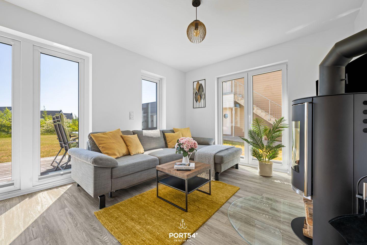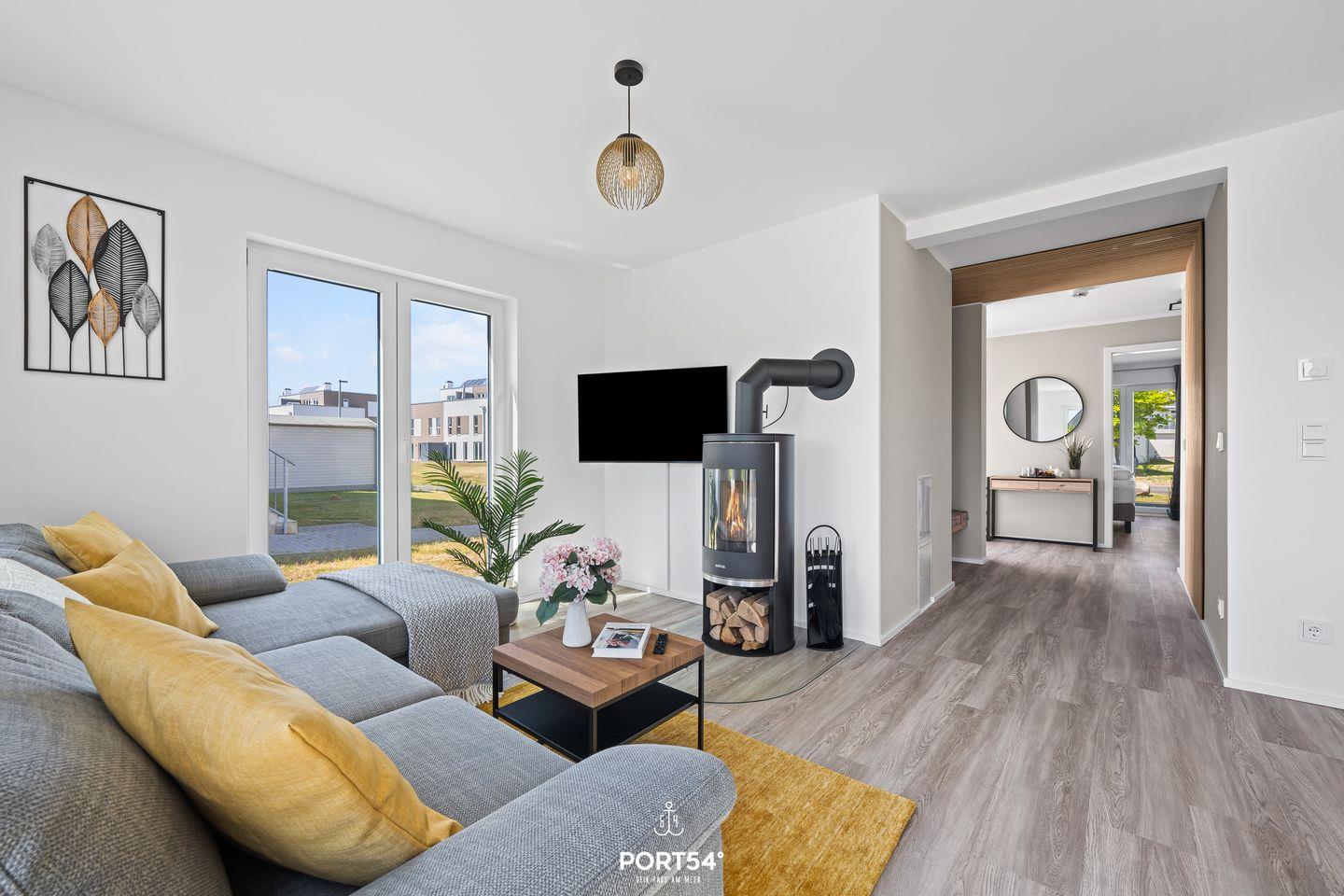Im lichtdurchfluteten Wohnzimmer mit angrenzender offener Küche, zwei Schlafzimmern und einem Badezimmer bietet Dir das „Vier Jahreszeiten“ alles, was Du für einen Ostseeurlaub brauchst. Im Wohnzimmer lädt eine Wohnlandschaft mit Schlaffunktion (120×200 cm) sowie ein Flachbild-TV zu geselligen Abenden ein. Genieße bei kälteren Temperaturen oder durchgefroren von langen Strandspaziergängen die wohlige Wärme des Kamins.