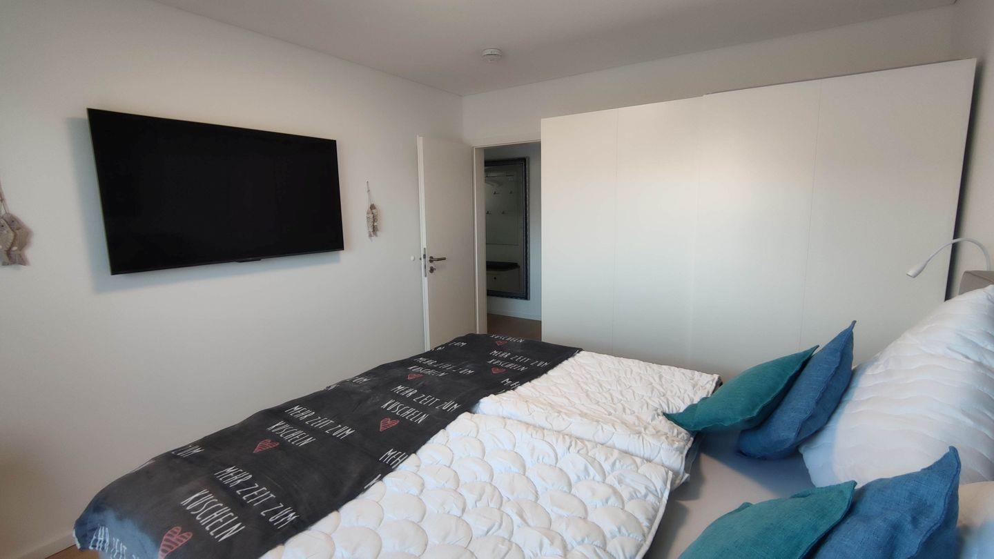 Deinem perfekten Rückzugsort für unvergessliche Urlaubserlebnisse an der Ostsee. Diese moderne und gemütliche Wohnung bietet Dir Platz für bis zu vier Personen. Die Unterkunft verfügt über zwei einladende Schlafzimmer, die mit Doppelbetten und Verdunkelungsmöglichkeiten ausgestattet sind und Dir erholsame Nächte ermöglichen. Beide Schlafzimmer verfügen zudem jeweils über einen Kleiderschrank und einen Flachbild-Fernseher.