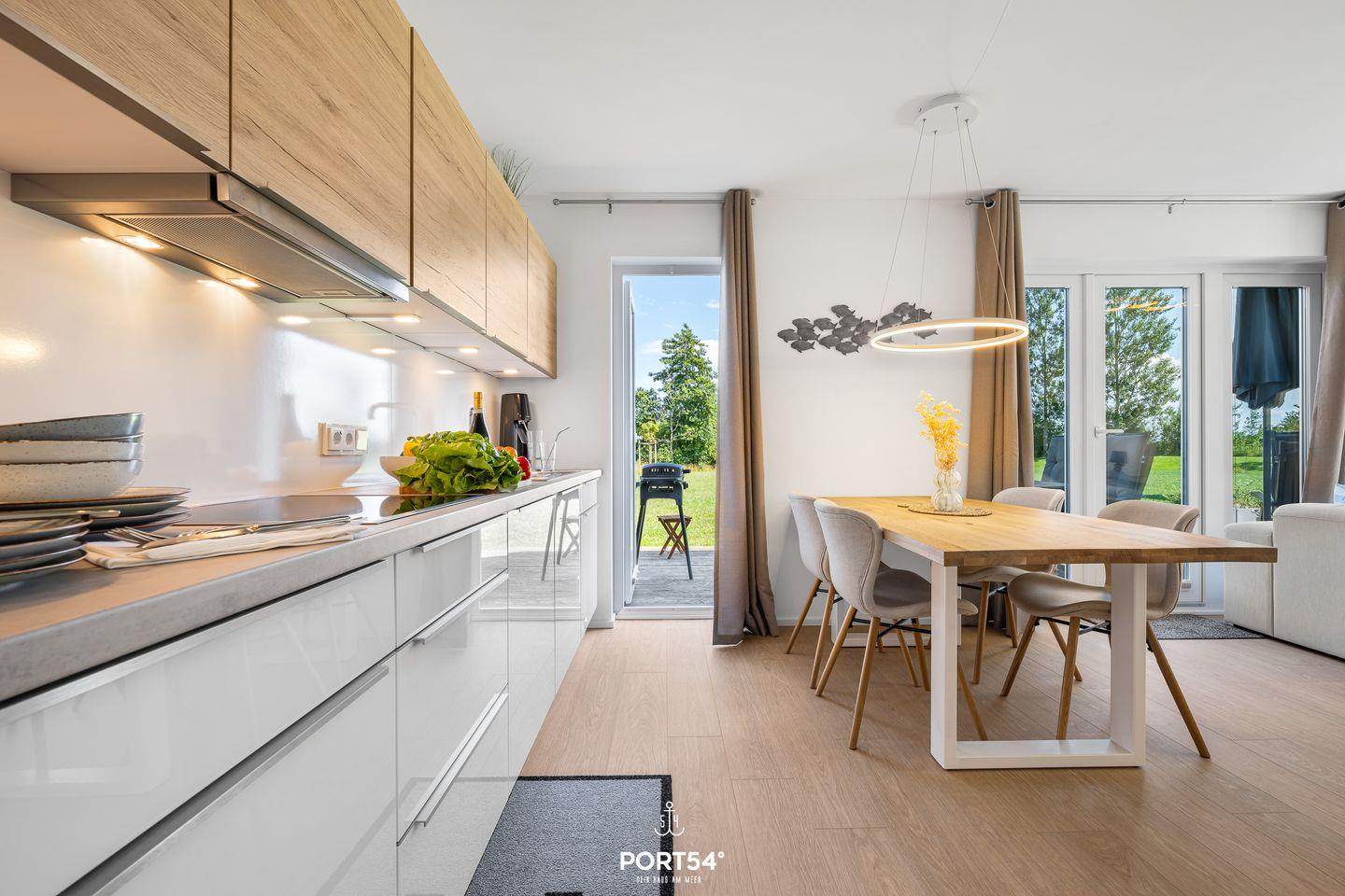 Willkommen in der Ferienwohnung Ankermann II in Olpenitz – einem traumhaften Rückzugsort für Ihren nächsten Urlaub an der Ostsee! Diese gemütliche und modern eingerichtete Ferienwohnung bietet Platz für bis zu vier Personen und ist ideal für Familien oder Paare, die eine erholsame Auszeit in unmittelbarer Nähe zur Natur suchen. Die Ferienwohnung erstreckt sich über 81m² und befindet sich im Erdgeschoss. Die Wohnung besteht aus zwei liebevoll eingerichteten Schlafzimmern, in denen erholsame Nächte garantiert sind. Das eine Schlafzimmer ist mit einem Doppelbett (180x200cm) ausgestattet, während das andere Schlafzimmer zwei Einzelbetten (90x200cm) bietet. Beide Schlafzimmer verfügen über je einen Kleiderschrank und einen Flachbild-Fernseher. Das Duschbad trägt Entspannung nach einem erlebnisreichen Tag bei. Hier steht Ihnen eine eigene Infrarot-Wärmekabine zur Verfügung, die Ihnen Momente purer Entspannung und Wellness bietet. Zusätzlich ist das Bad mit einen Handtuchheizkörper und einem Föhn ausgestattet. Die offene Küche ist mit allen modernen Annehmlichkeiten ausgestattet, die Sie benötigen, um sich wie zu Hause zu fühlen. Sie finden hier einen Soda Max, einen Entsafter, einen Tefal-Grill und viele weitere zahlreiche Küchenutensilien, um köstliche Mahlzeiten zu zaubern. Im angrenzenden Wohnzimmer können Sie nach einem langen Strandtag wunderbar entspannen. Hier gibt es ein einladendes Sofa und an den kühleren Tagen sorgt ein Kaminofen für wohlige Wärme. Für die Kleinsten stehen ein Babybett und ein Hochstuhl zur Verfügung. Ein Highlight der Wohnung ist die Terrasse, auf der Sie im Freien entspannen, die frische Meeresluft genießen und die Seele baumeln lassen können. Die gemütlichen Gartenmöbeln und ein Grill lädt zu geselligen Abenden im Freien ein. Für Kinder gibt es Schwimmbretter, damit auch kleine Wasserratten den Urlaub in vollen Zügen genießen können. Die Lage der Ferienwohnung ist ideal für Aktivurlauber und Naturliebhaber - einen tollen Blick in die Natur und der Strand ist nicht weit entfernt. Vor der Unterkunft steht ein privater Parkplatz zur Verfügung.