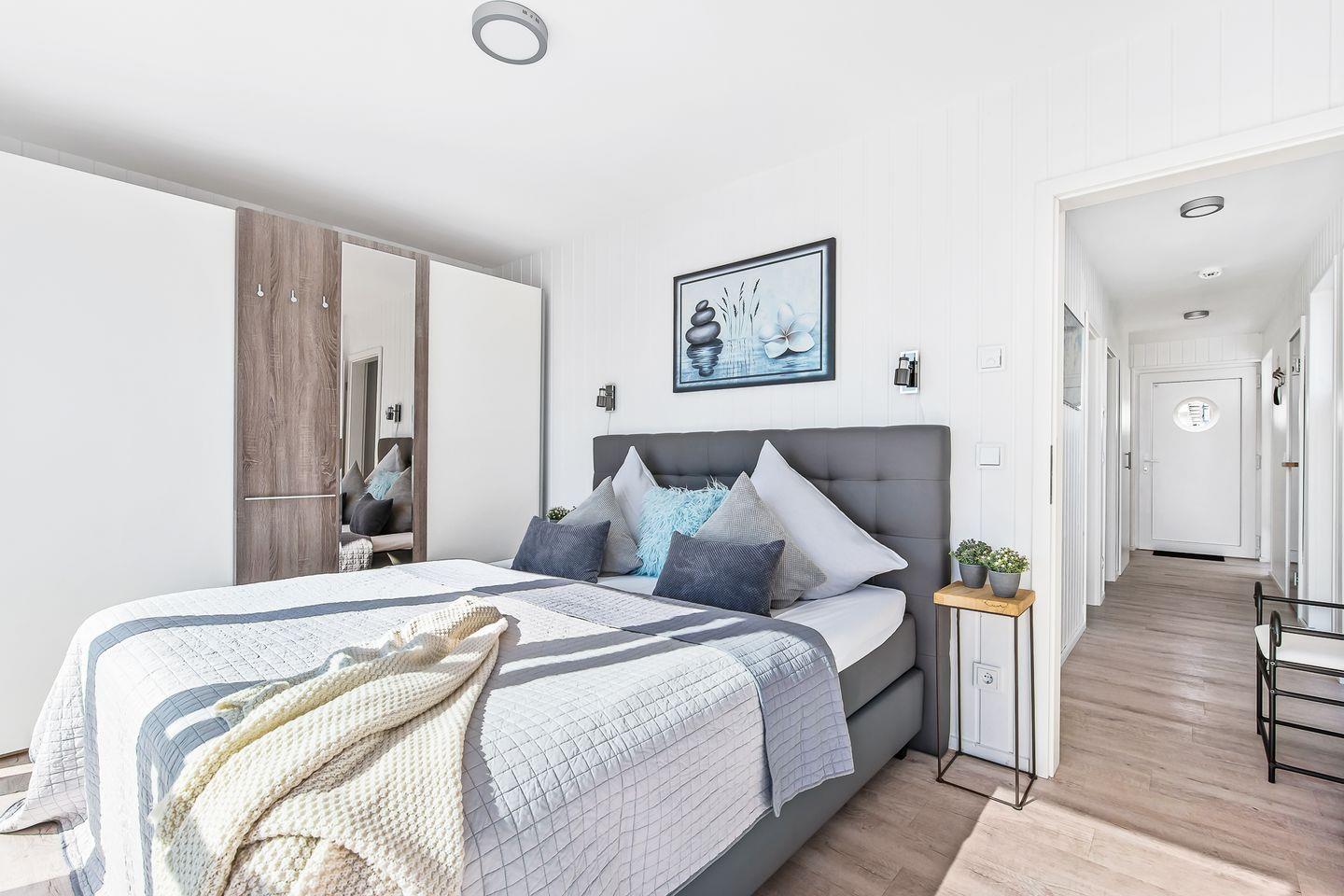 Das Ferienhaus verfügt über zwei einladende Schlafzimmer, wobei das Hauptschlafzimmer mit Doppelbett Dir einen direkten Zugang zu einer der drei Terrassen bietet.
