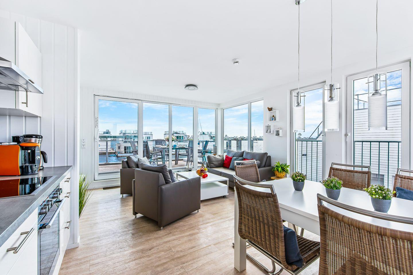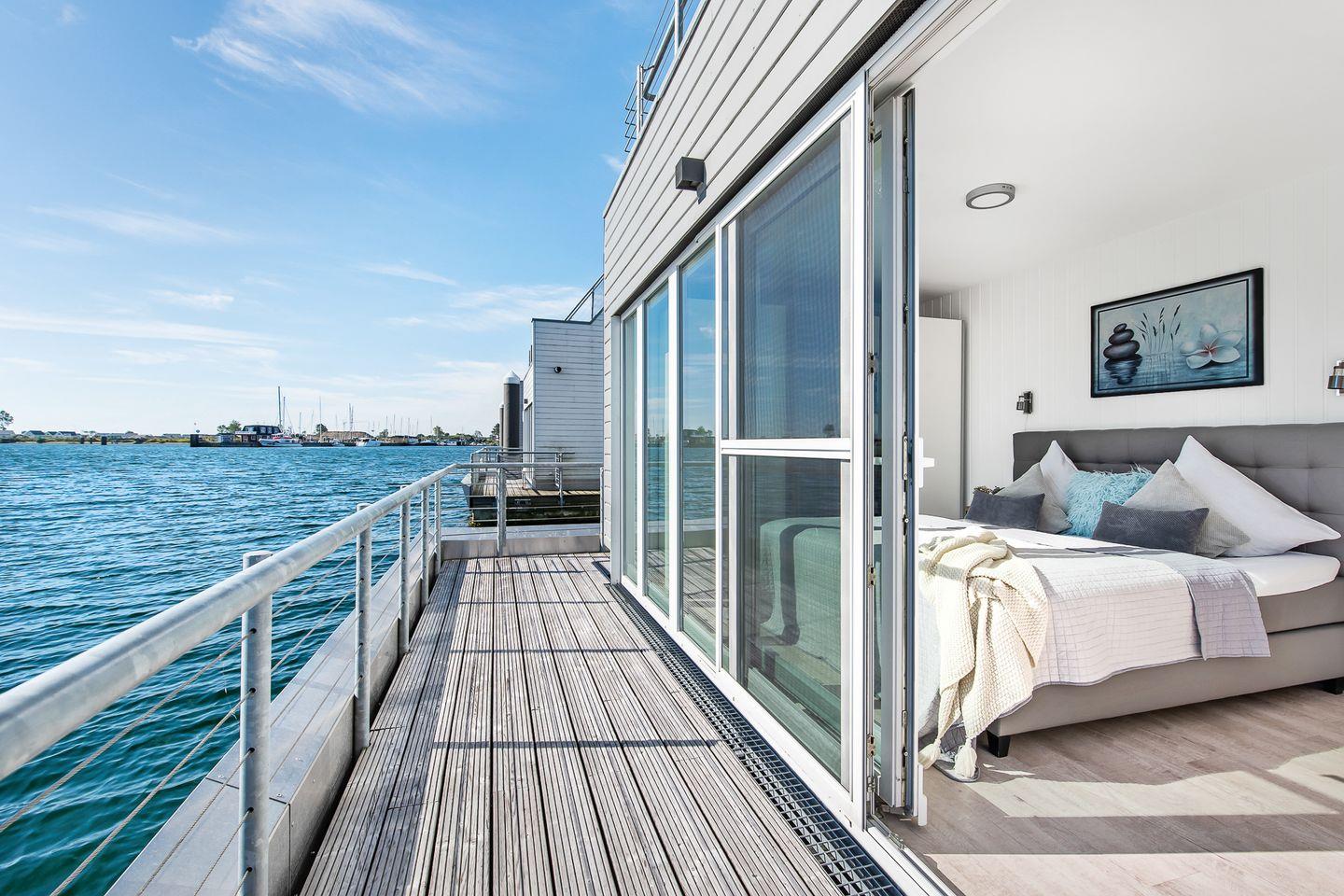 Dieses freistehende schwimmende Haus bietet Dir auf großzügigen 97m² Platz für bis zu vier Personen.