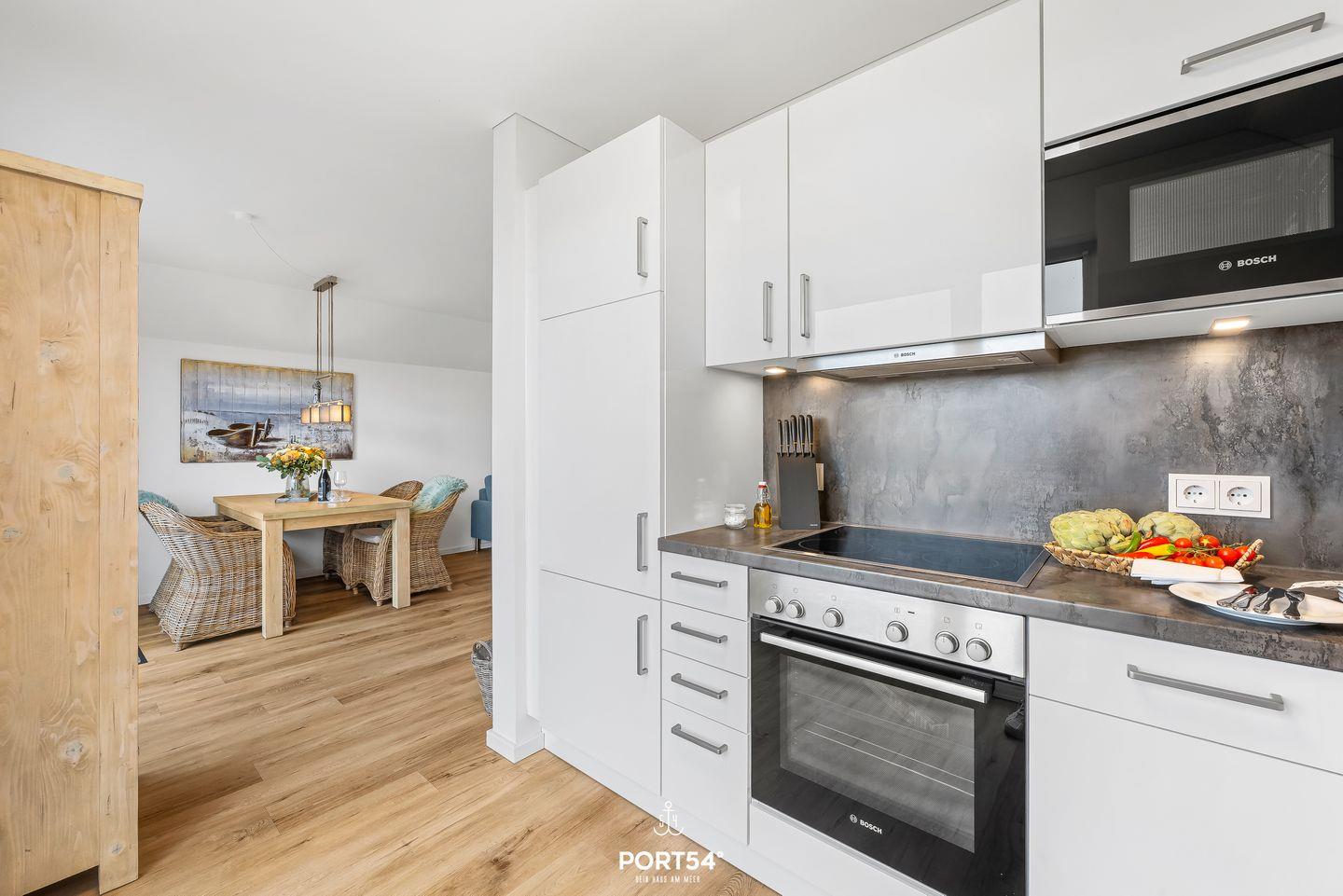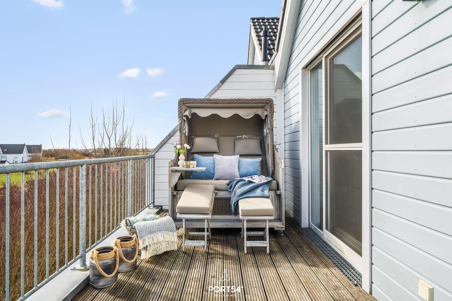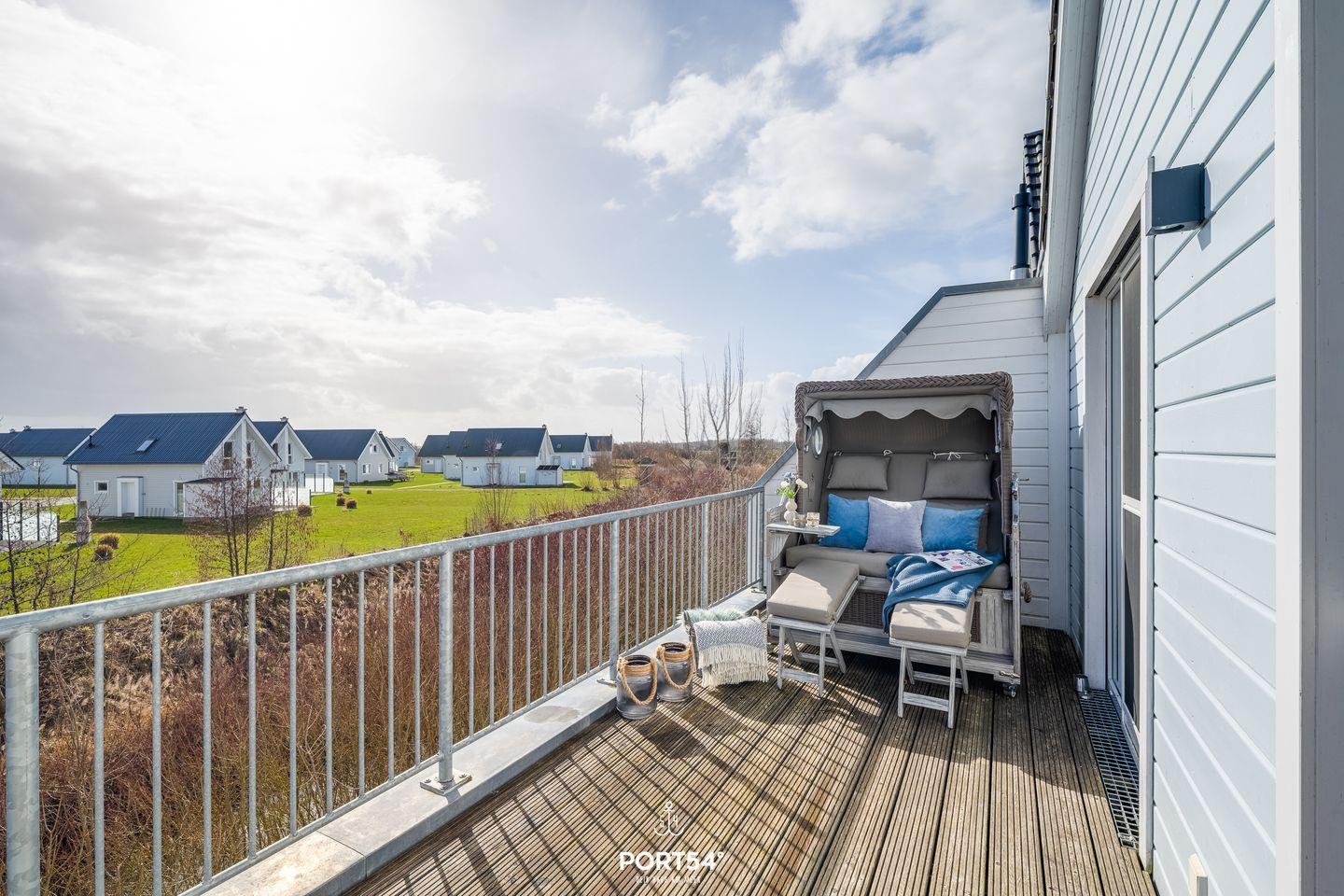 Ein besonderes Highlight ist die private Sauna, in der Sie nach einem aktiven Tag wunderbar entspannen können. Auf dem Balkon laden ein Strandkorb sowie Gartenmöbel zum Verweilen ein. Ein Elektrogrill bietet zudem die Möglichkeit für gemütliche Grillabende an der frischen Ostseeluft.