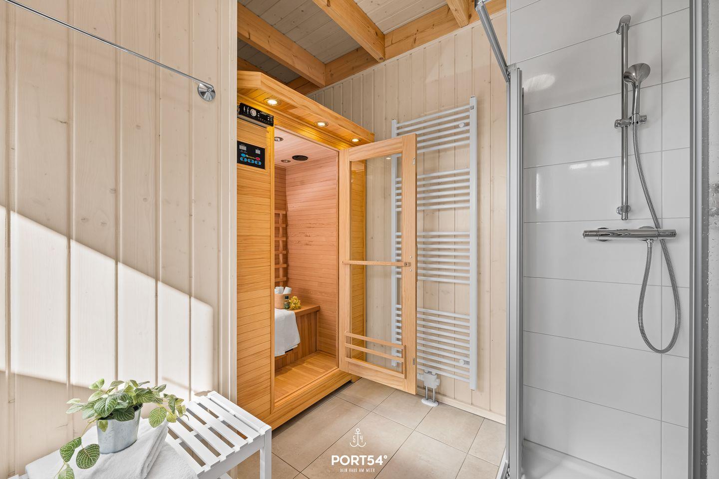 Die „Südheide“ bietet Dir zwei Badezimmer. Eines ist mit einer ebenerdigen Dusche und einer Infrarot-Sauna ausgestattet, im zweiten Bad befindet sich eine Badewanne. Entspanne Dich in der Infrarot-Sauna oder gönne Dir ein Schaumbad in der Badewanne – hier hast Du Platz für Deine persönliche Wellnessoase.