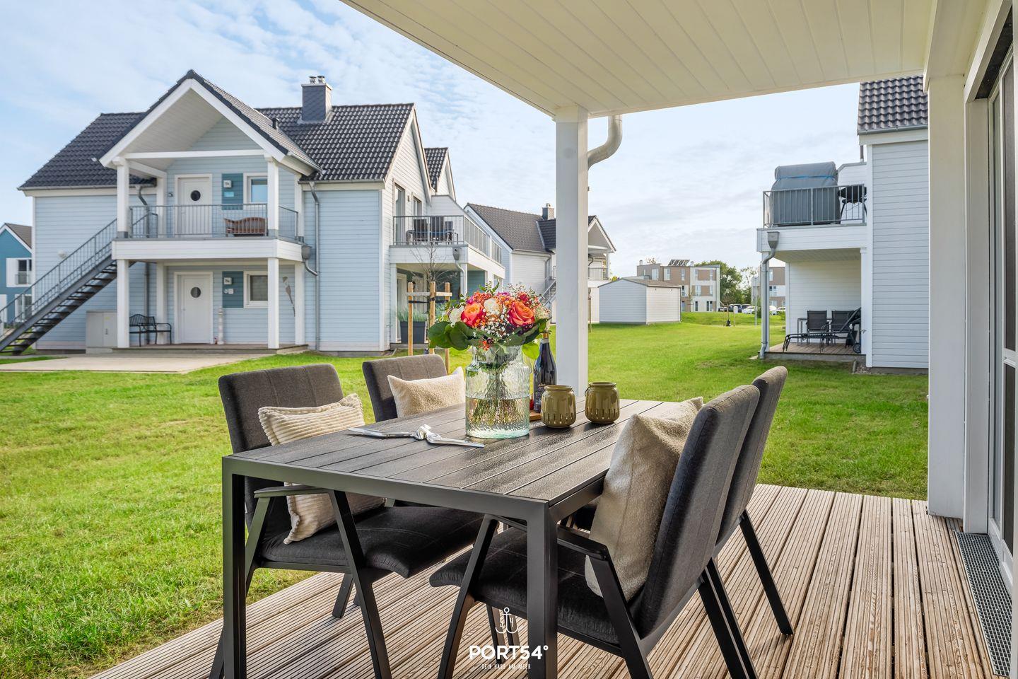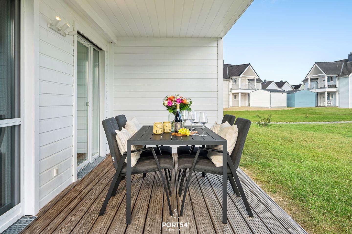 Erholung im Außenbereich bietet Dir die private Terrasse mit Gartenmöbeln und Sonnenliegen. Ein Elektrogrill steht bereit, ebenso wie ein gepflegter Garten mit Liegewiese. Nach einem erlebnisreichen Tag an der Ostsee kannst Du hier entspannen und die frische Meeresluft genießen. Für Deinen PKW stehen Dir ein Privatparkplatz sowie ein abschließbarer Fahrradschuppen direkt an der Unterkunft zur Verfügung. Auch Hunde sind herzlich willkommen.