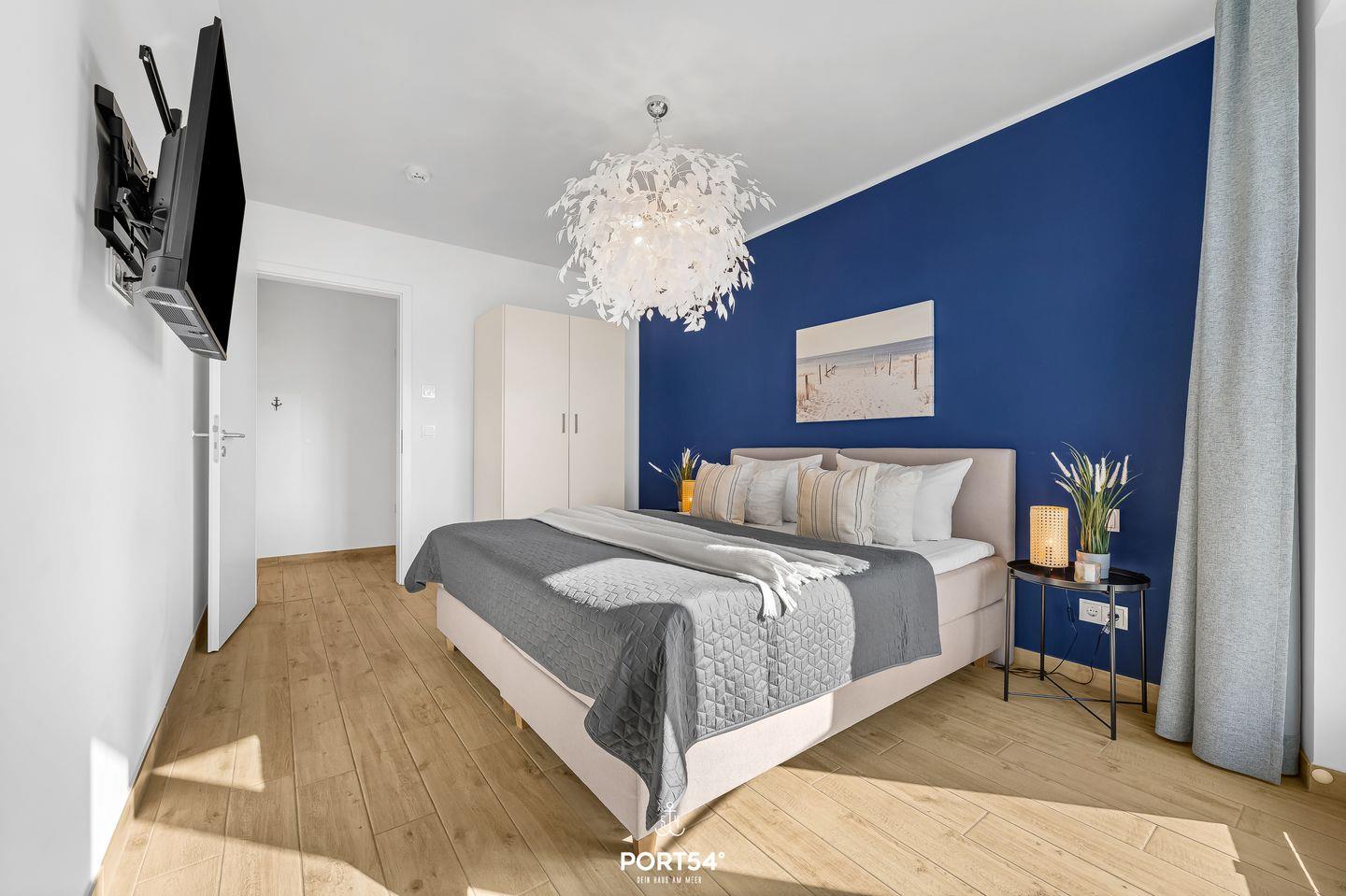 Die Unterkunft verfügt über zwei Schlafzimmer. Ein Schlafzimmer ist mit einem Doppel-Boxspringbett (180 × 200 cm) ausgestattet, das zweite mit zwei Einzel-Boxspringbetten (90 × 200 cm), die ebenfalls als Doppelbett gestellt sind. Beide Schlafzimmer bieten Dir jeweils einen Kleiderschrank, Fliegengitter, Verdunkelungsmöglichkeiten sowie einen Smart-TV für erholsame Nächte.