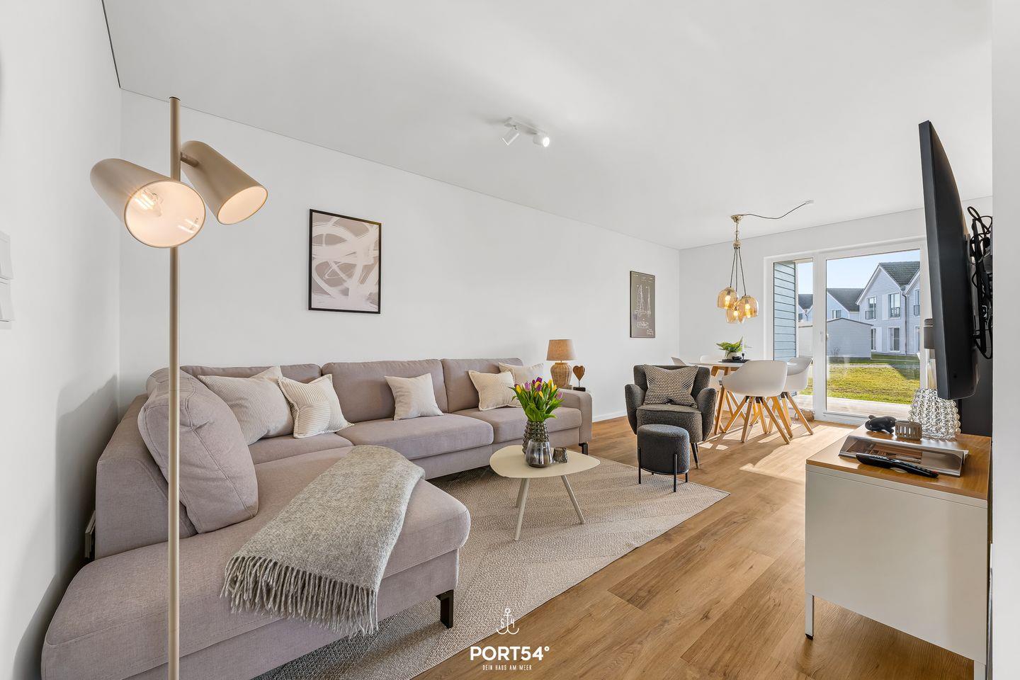 Beim Betreten der Wohnung „SalzWasserHerz" werdet ihr von einem gemütlichen, maritim und hochwertig eingerichteten Wohn- und Essbereich empfangen. Cozyness soll euch während eures gesamten Urlaubs begleiten.