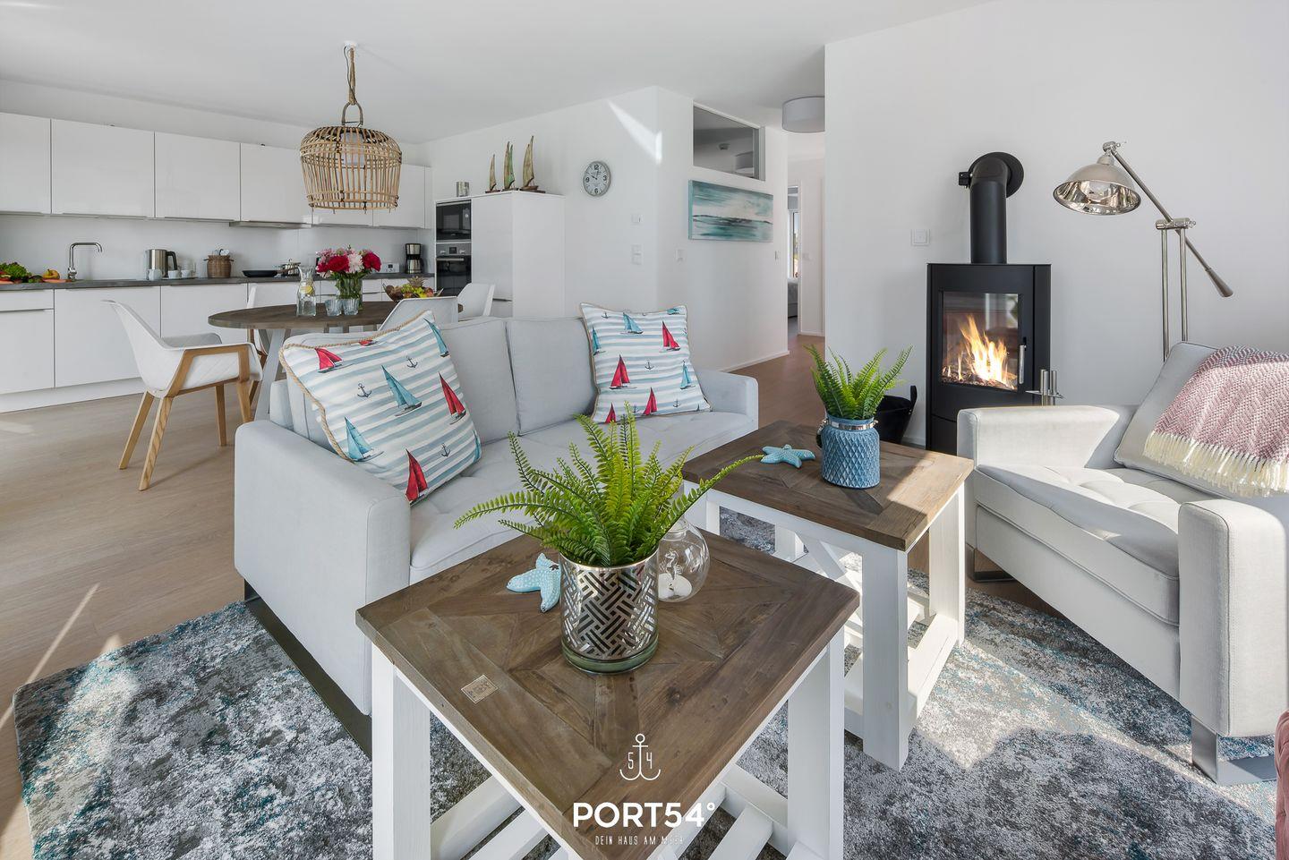Moderne Ferienwohnung SalzWasserHerz nahe Ostsee mit Sauna, Kamin, Terrasse und Privatparkplatz für erholsame Urlaubstage.