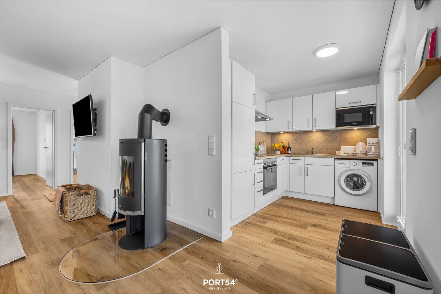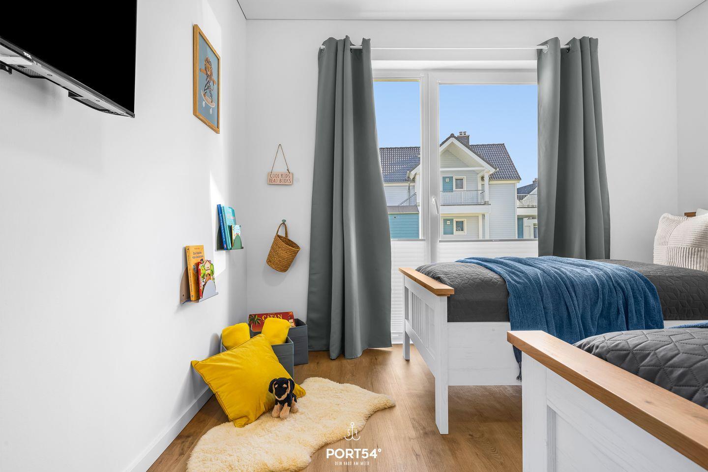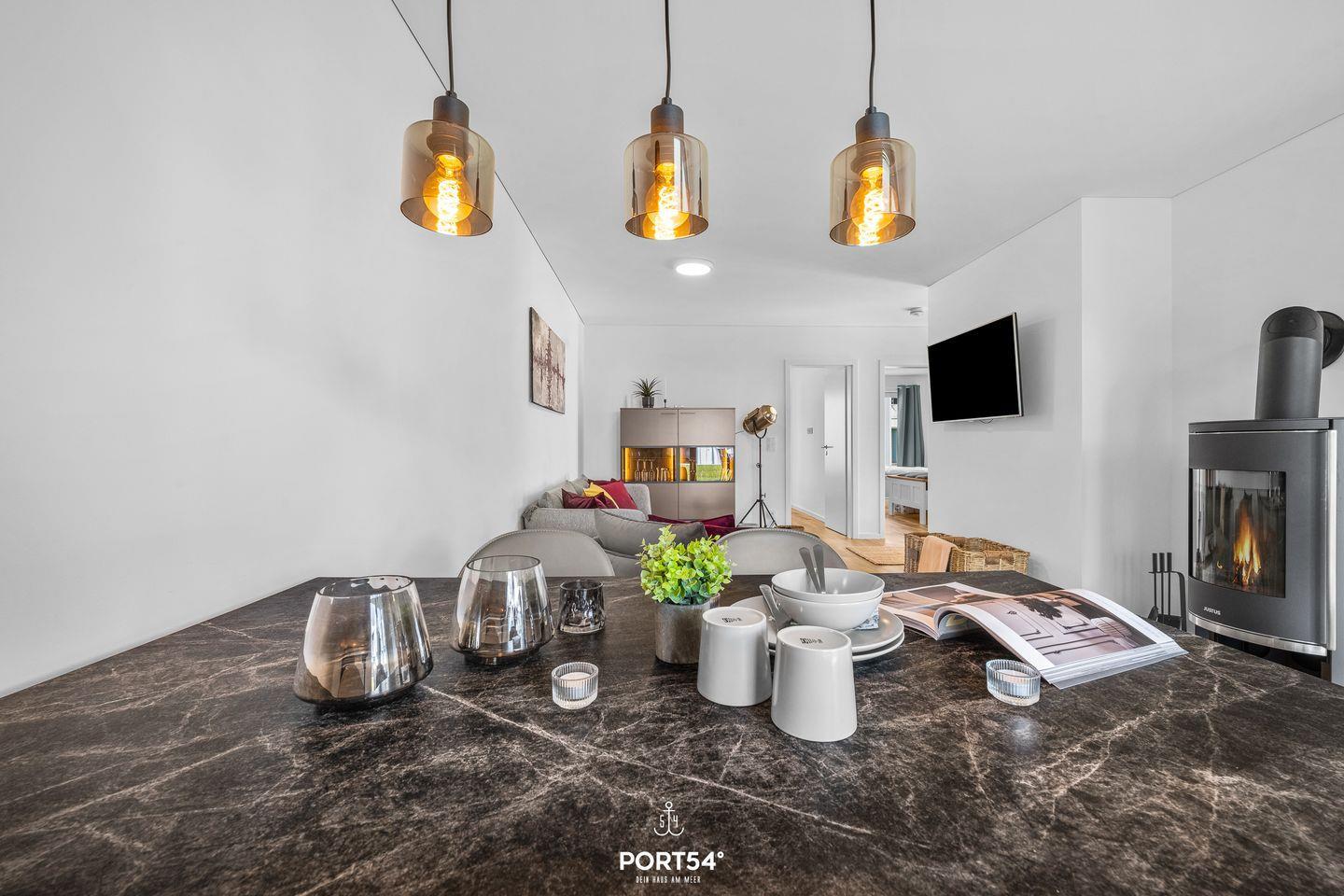 Die moderne Erdgeschosswohnung in einer hochwertigen Ferienanlage bietet ein stilvolles Ambiente – ideal für Paare und Familien. Im Zentrum der Wohnung erwartet Sie ein heller, offen gestalteter Wohn- und Essbereich mit behaglichem Kaminofen, komfortablem Sofa, einem Sessel, einem Smart-TV und WLAN sowie diverse Spiele. Hier können Sie mit Ihren Liebsten gemeinsame Stunden verbringen. Die vollausgestattete Küche mit Spülmaschine, Mikrowelle und Filterkaffeemaschine lässt keine Wünsche offen - ideal für gemeinsame Kochabende. Zwei separate Schlafzimmer bieten Platz für bis zu vier Personen. Im ersten Schlafzimmer erwartet Sie ein bequemes Doppelbett (180x200?cm), im zweiten zwei Einzelbetten (100x200?cm) und ein moderner Smart-TV. Beide Räume bieten je einen Kleiderschrank sowie Verdunkelungsmöglichkeiten für entspannte Nächte. Auf Familien mit kleinen Kindern ist die Ferienwohnung passend eingerichtet: Ein Babybett mit Matratze, sowie ein Kinderhochstuhl und ein Bollerwagen sind vorhanden, ebenso wie eine Spielecke im Schlafzimmer.
