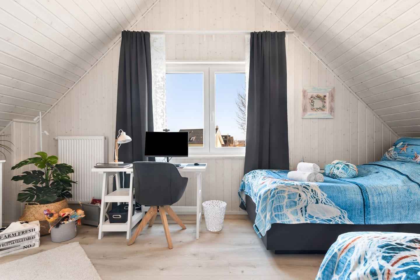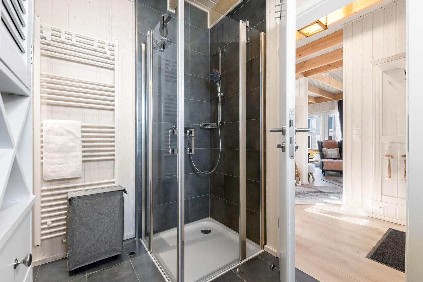 Das Ferienhaus "Haus am Fjord" in Olpenitz empfängt Sie in gemütlicher Atmosphäre im OstseeResort Olpenitz, nur wenige Gehminuten vom Meer und Strand entfernt. Mit einer Wohnfläche von 86 m² bietet das zweigeschossige Ferienhaus ausreichend Platz für bis zu fünf Personen. Zwei separate Schlafzimmer verleihen der Unterkunft angenehme Rückzugsorte. Eines der Schlafzimmer verfügt über ein Doppel-Boxspringbett (200x200cm) und ein Schlafsessel (190x80cm) sowie ein Smart-TV, das zweite stellt zwei Einzel-Boxspringbetten (100x200cm), einen weiteren Smart-TV und diverses Kinderspielzeug zur Verfügung. Beide Schlafzimmer bieten je ein Kleiderschrank und Verdunkelungsmöglichkeiten. Der großzügige Wohnbereich mit offener Küche dient als Herzstück der Unterkunft. Die Küche ist modern ausgestattet. Sie finden hier neben einem Ceranherd, einem Backofen, einer Mikrowelle und einer Spülmaschine auch eine Nespresso- und Kaffeemaschine, Raclette einen Smoothie-Maker, Toaster und umfangreiche Küchenutensilien für die komfortable Selbstverpflegung und gemütliche Kochabende zusammen. Der Essbereich im Wohnzimmer lädt zu gemeinsamen Mahlzeiten ein, während hochwertige Sitzgelegenheiten wie ein Sofa, ein Sessel und ein Smart-TV ein behagliches Ambiente schaffen. Hier befinden sich zur Unterhaltung ein Radio, Video-on-demand, jegliche Spiele sowie ein Bluetooth-Speaker. Der kostenfreie WLAN-Zugang ermöglicht Ihnen, auch im Urlaub jederzeit online zu bleiben. Zwei Badezimmer, eins ausgestattet mit bodengleicher Dusche und Infrarotkabine, eins mit Badewanne und Kosmetikspiegel sowie Haartrockner, sorgen für angenehmen Komfort und Erholung. Für wohlige Wärme sorgen ein Kaminofen und eine Fußbodenheizung. Alle Fenster sind mit Sichtschutz versehen. Familien mit Kindern profitieren von kindgerechter Ausstattung: Ein Babybett, ein Hochstuhl, ein Tritthocker, allerlei Kinderspielzeug und ein Bollerwagen stehen bereit. Die Terrasse ist mit komfortablen Gartenmöbeln, Sonnenliegen, einem Sonnenschirm und einem Holzkohlegrill ausgestattet, die angrenzende Rasenfläche lädt zum Entspannen und Spielen ein. Weitere Ausstattungsdetails des Hauses umfassen einen eigenen Parkplatz direkt vor der Unterkunft, eine E-Autoladestation, eine Waschmaschine, Wäscheständer, Bügeleisen mit Bügelbrett sowie einen Staubsauger. Praktische Einrichtungen wie Garderobe, Schuhschrank und Kommoden sorgen für einen angenehmen Aufenthalt. In dieser Unterkunft genießen Sie die Kombination aus maritimem Flair, moderner Ausstattung und vielseitigen Freizeitmöglichkeiten in direkter Umgebung. Die Region eignet sich sowohl für Erholungssuchende als auch für aktive Urlaubsgäste, die Wert auf Komfort und eine abwechslungsreiche Umgebung legen. Für Angler und Wassersportfreunde bietet die Lage direkt am Meer zahlreiche Möglichkeiten: Segeln, Windsurfen, Schwimmen, Radfahren, Nordic Walking und Wasserski sind in der Umgebung möglich. Einkaufsmöglichkeiten, Restaurants und der öffentliche Nahverkehr sind jeweils in etwa einem Kilometer erreichbar. Die nächstgelegene Stadt Kappeln befindet sich in rund 5,2 Kilometern Entfernung. Lassen Sie den Alltag hinter sich und genießen Sie entspannte Tage in unserer gemütlichen Ferienunterkunft – wir freuen uns darauf, Sie bald willkommen zu heißen.