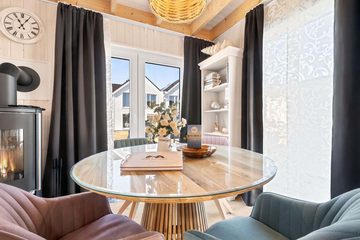 Modernes Ferienhaus am Meer in Olpenitz mit Kaminofen, Infrarotkabine und E-Ladestation für erholsame Tage.