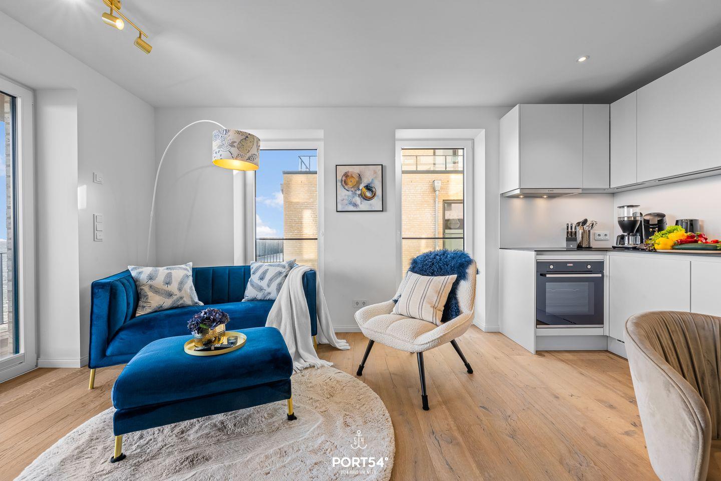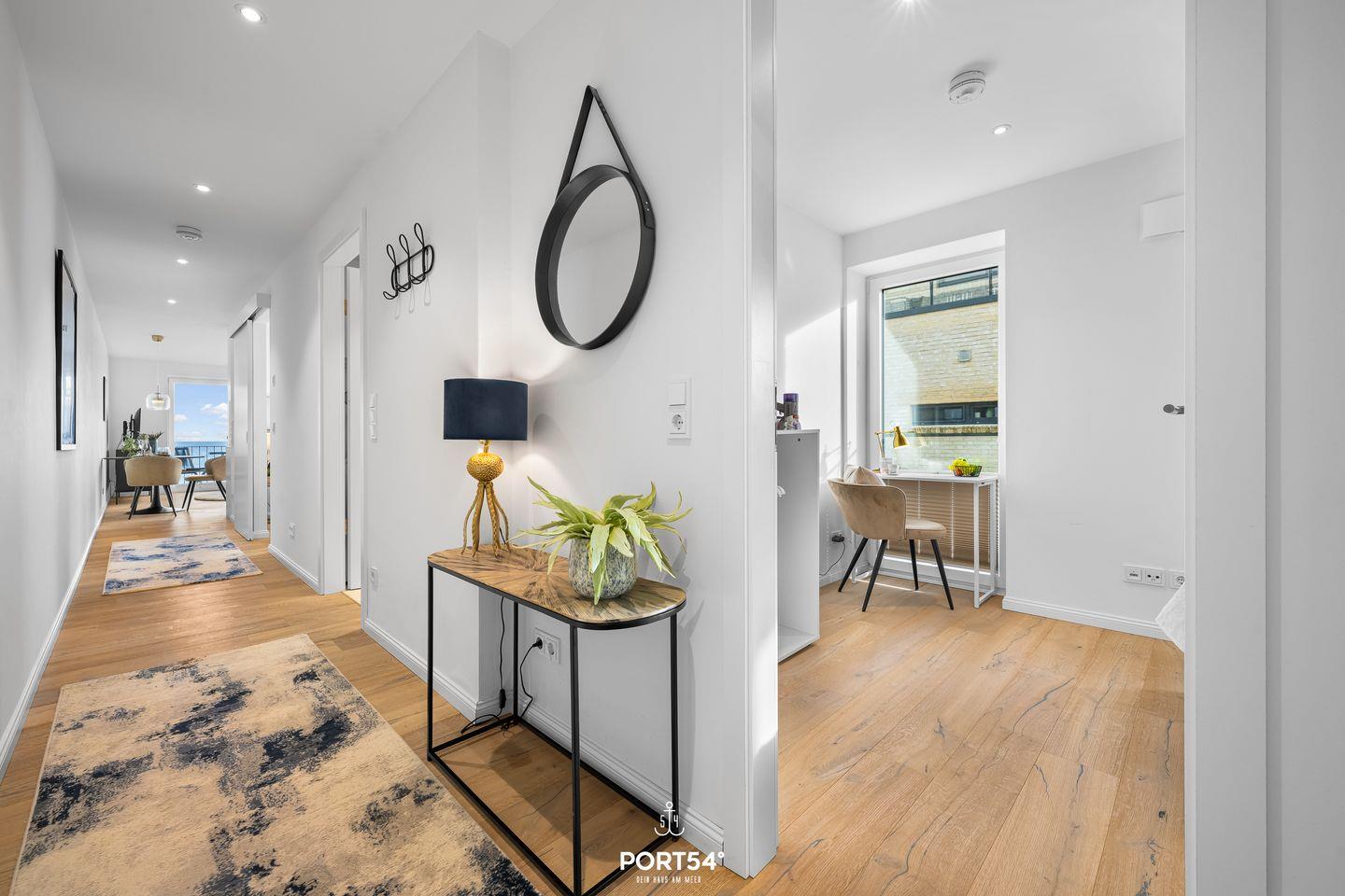 Exklusives Apartment mit Meerblick, Sauna, 2 Balkone und E-Ladestation in erster Reihe am Wasser.