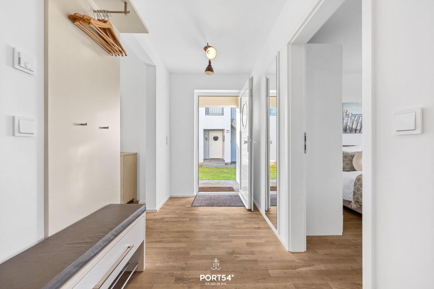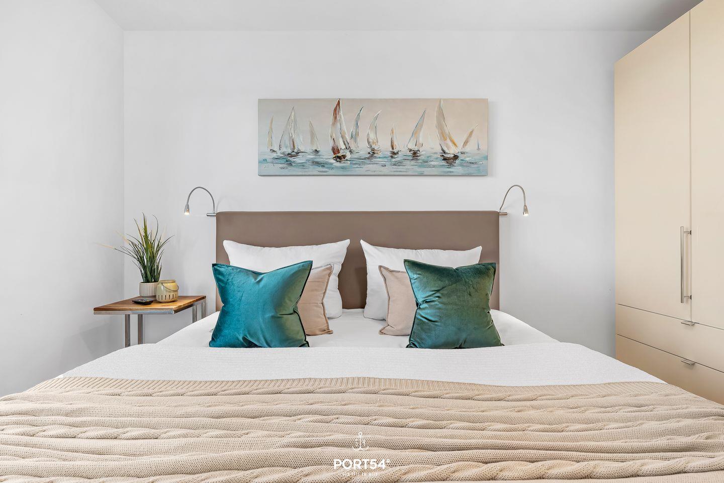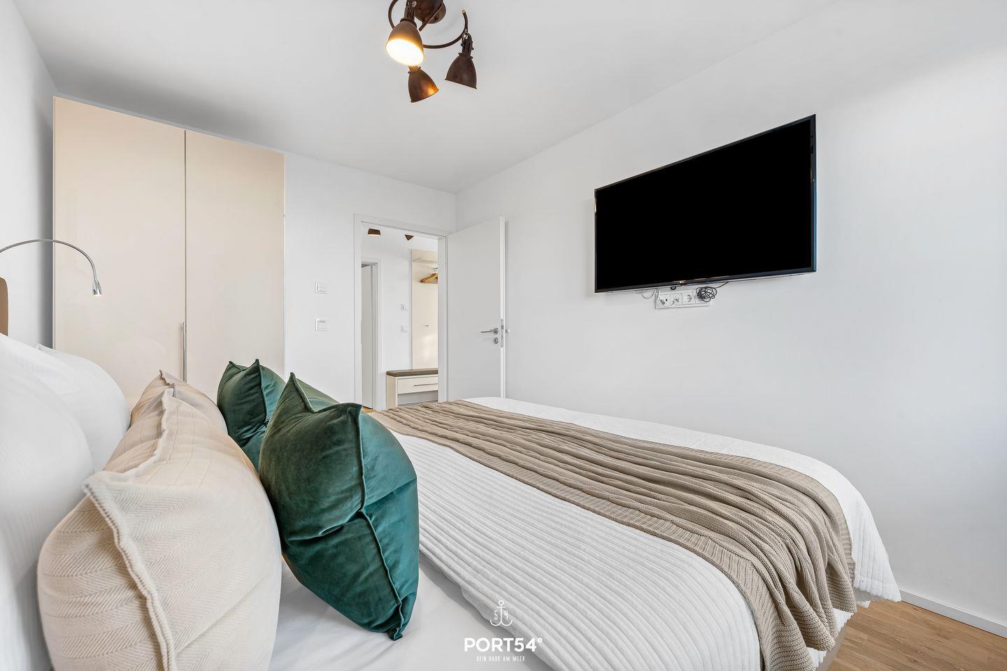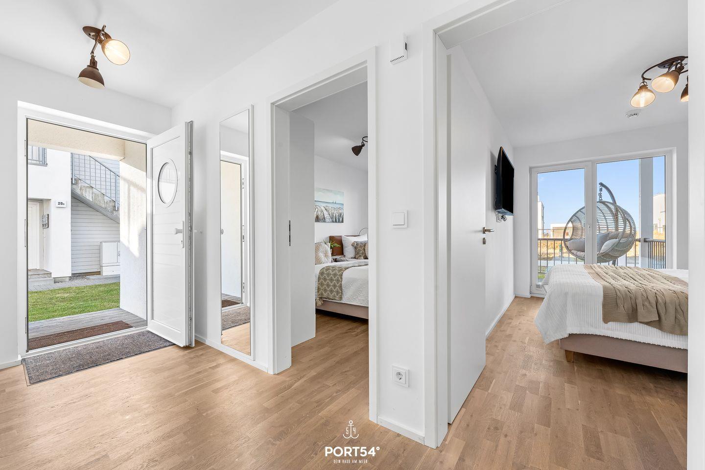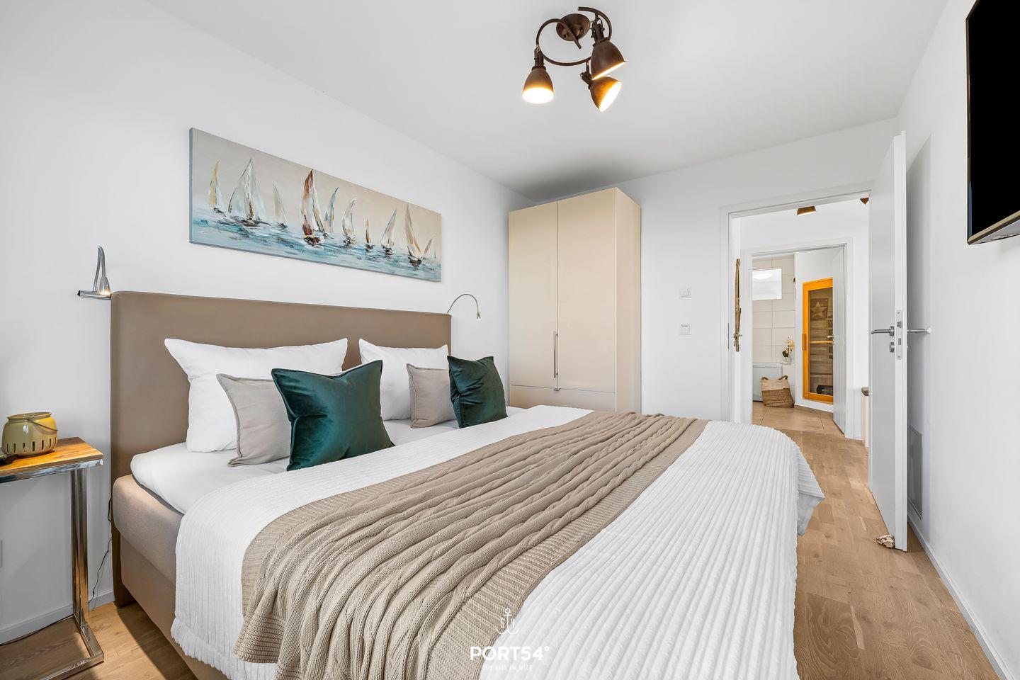 Die moderne Wohnung liegt im Erdgeschoss eines Gebäudes im OstseeResort Olpenitz und ist ideal für Familien und Paare geeignet. Zwei komfortable Schlafzimmer und ein bequemes Schlafsofa bieten Dir Platz für bis zu sechs Gäste. Eines der Schlafzimmer bietet Dir ein Doppel-Boxspringbett (180x200?cm), das andere Schlafzimmer verfügt über 2 bequeme Einzel-Boxspringbetten (90x200?cm). Beide Schlafzimmer bieten Dir je einen Kleiderschrank, einen TV und Verdunkelungsmöglichkeiten, damit Du hier entspannte Stunden verbringen kannst. Für Familien stehen ein Babybett und ein Kinderhochstuhl bereit – Kinder jeden Alters sind bei Dir herzlich willkommen.