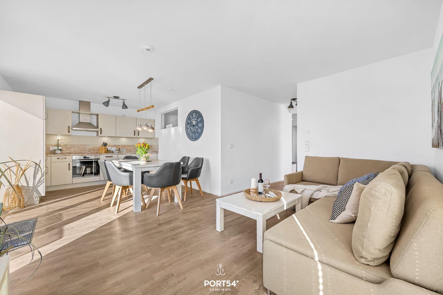 Das großzügige Wohnzimmer mit Essbereich lädt Dich zum Entspannen, gemeinsamen Essen oder einfach zum Genießen des Ausblicks ein, während die offene, modern ausgestattete Küche mit Induktionsherd, Spülmaschine, Mikrowelle und Kaffeemaschine alles bietet, was Du für unvergessliche Genussmomente benötigst. Für Unterhaltung sorgen ein Fernseher und eine HiFi-Anlage, während die großen Fenster viel Tageslicht hereinlassen und eine freundliche Atmosphäre schaffen.
