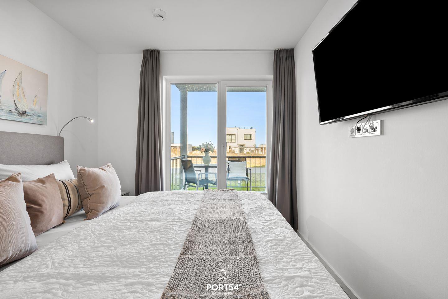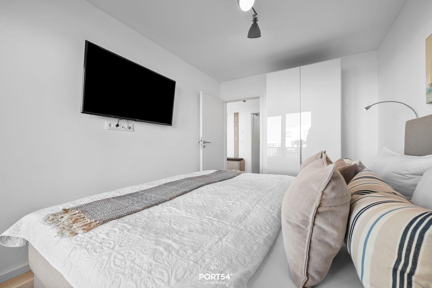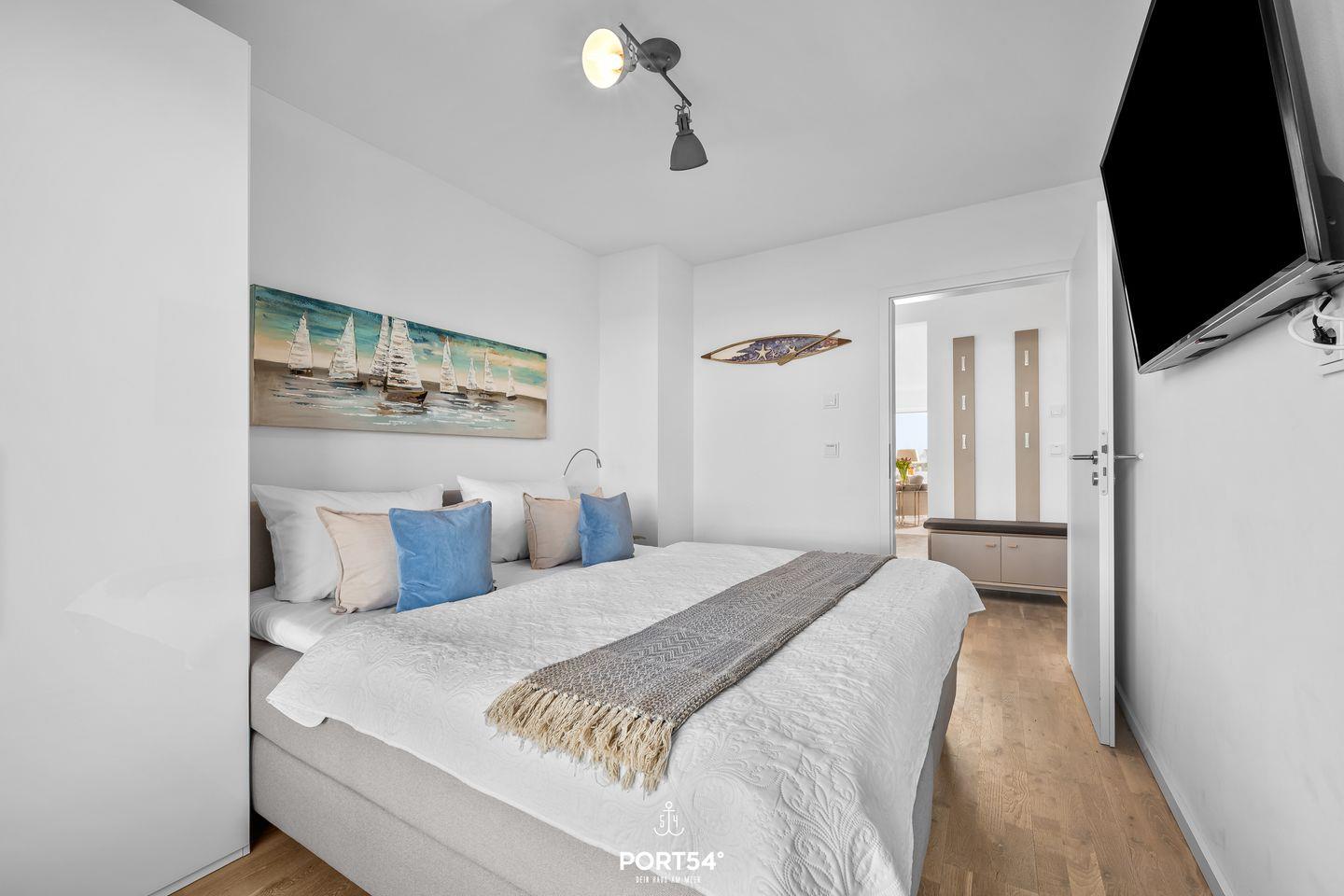 Die zwei separaten Schlafzimmer bieten jeweils Doppel-Boxspringbetten (180 × 200?cm) und einen eigenen Fernseher für entspannte Abende. Außerdem sind sie ausgestattet mit einem Kleiderschrank und Verdunkelungsmöglichkeiten.