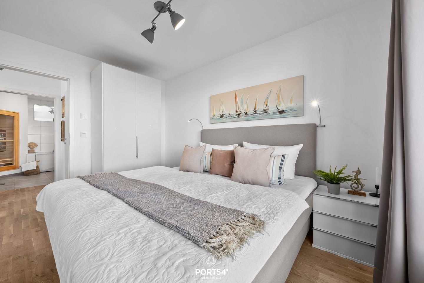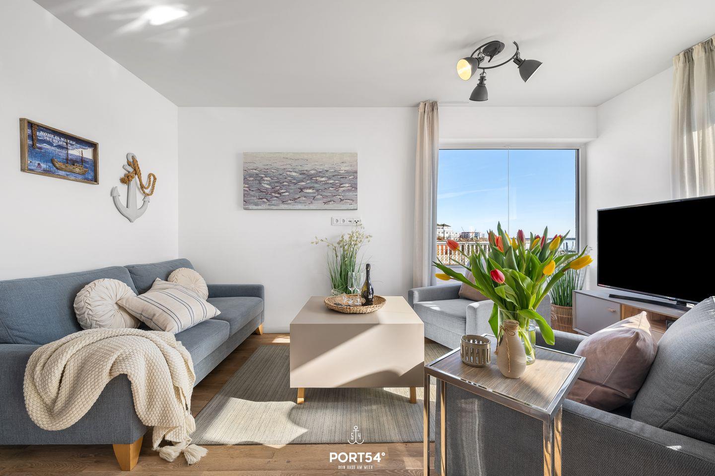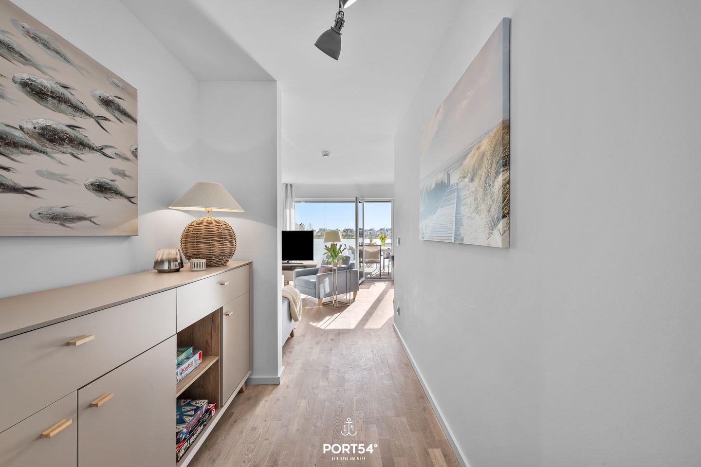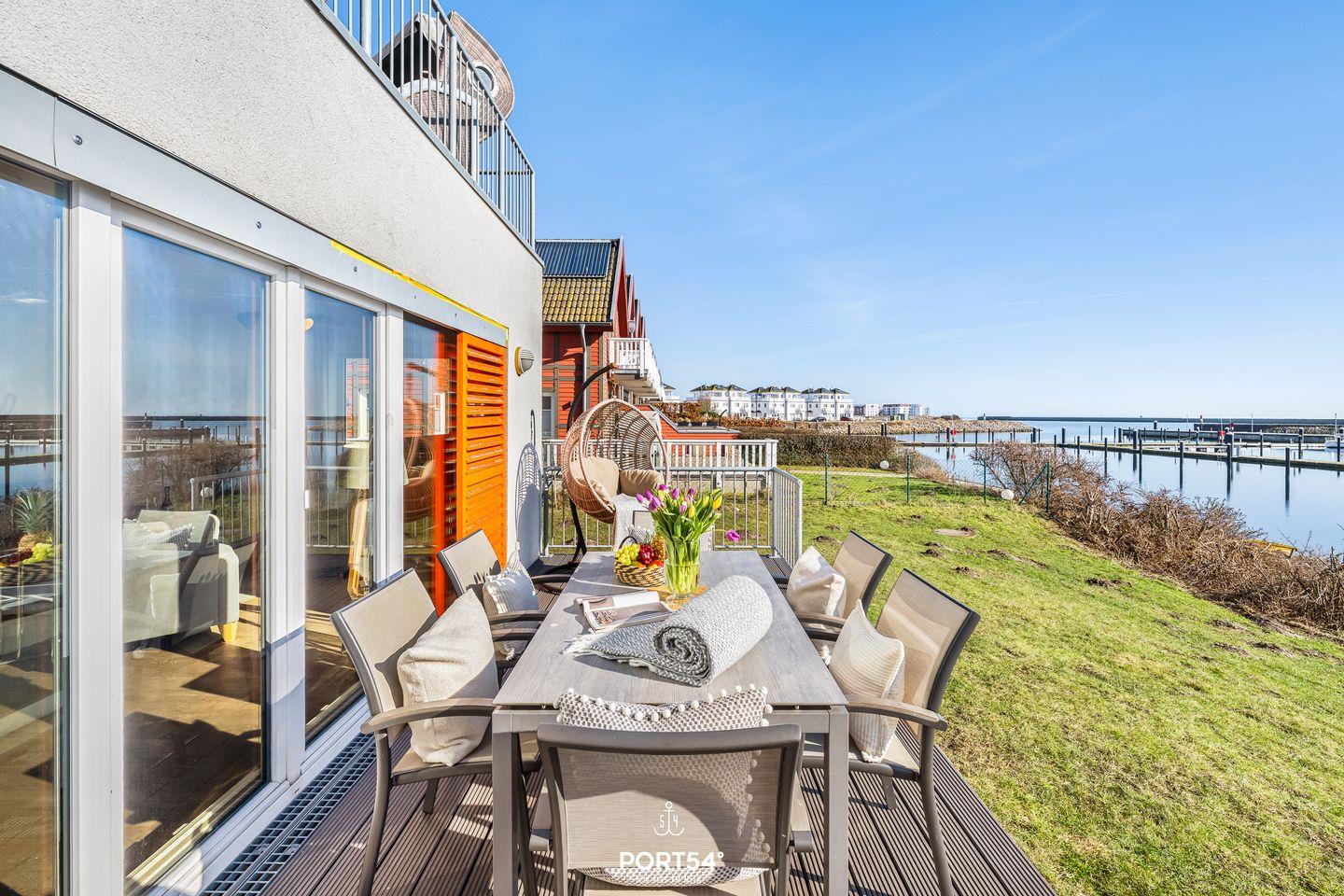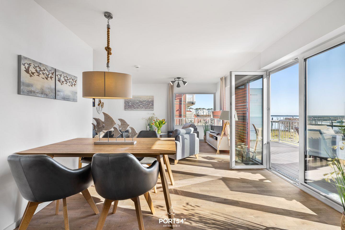 Die Ferienwohnung "Landungsbrücke 28" bietet Platz für bis zu sechs Personen und überzeugt mit einer hochwertigen Ausstattung. Eine eigene Sauna, Terrasse, moderne Küche, WLAN und ein privater Parkplatz sorgen für höchsten Komfort. Dank der Lage mit fantastischem Meerblick ist sie der ideale Rückzugsort für Familien und Erholungssuchende.