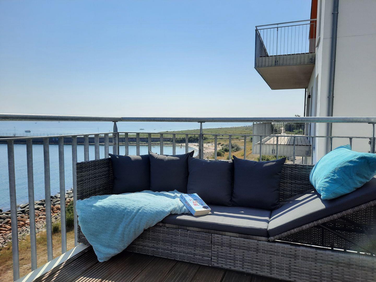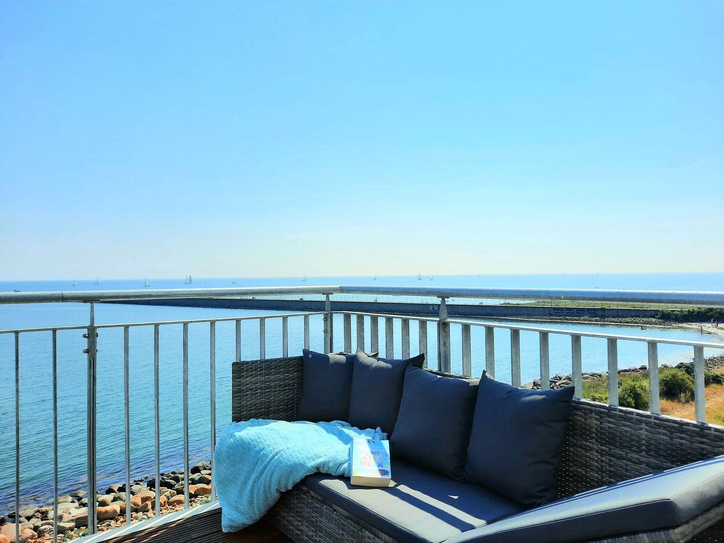 Die Ferienwohnung HochSee in Olpenitz bietet exklusiven Meerblick, Infrarotkabine, Balkon und modernen Komfort für einen entspannten Urlaub.