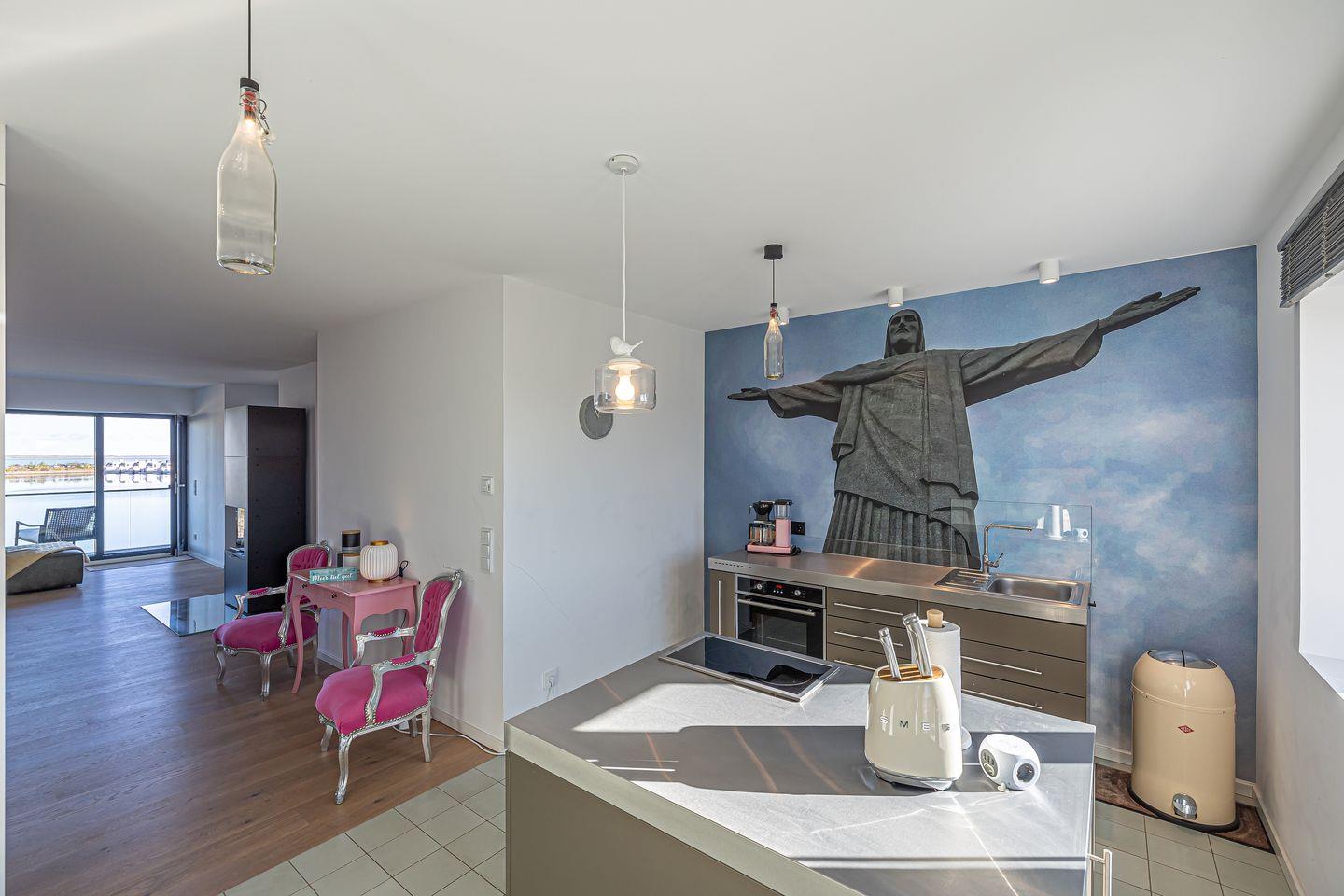 Die moderne Küche ist zum Wohnzimmer hin offen gehalten und überzeugt durch eine umfassende Ausstattung: Neben einem Induktionsherd (2 Platten), Toaster und Spülmaschine findest Du hier auch eine Espresso- und eine Kaffeemaschine, einen Sandwichmaker, Mixer und Pürierstab sowie sämtliche Küchenutensilien, Geschirr und Besteck für ein komfortables Kocherlebnis.