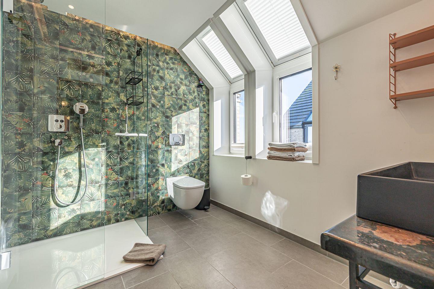 Im Tageslicht-Bad erwarten Dich eine bodengleiche Dusche, ein Föhn sowie ein Kosmetikspiegel, zudem ist ein separates Gäste-WC vorhanden.