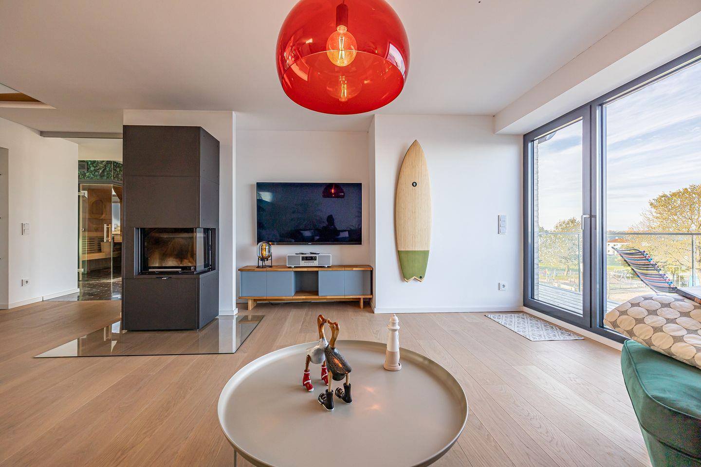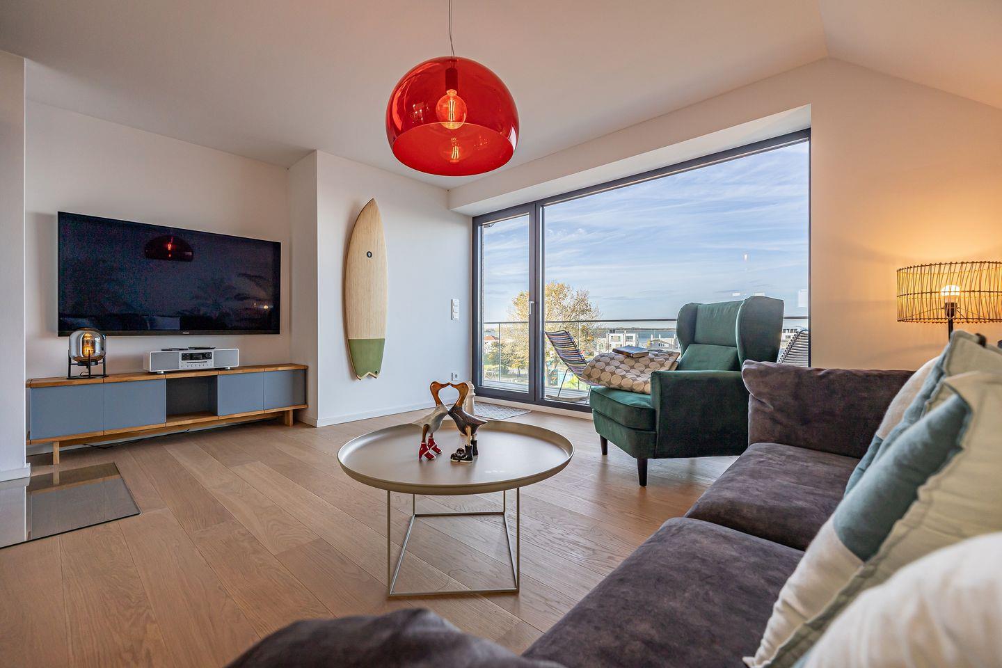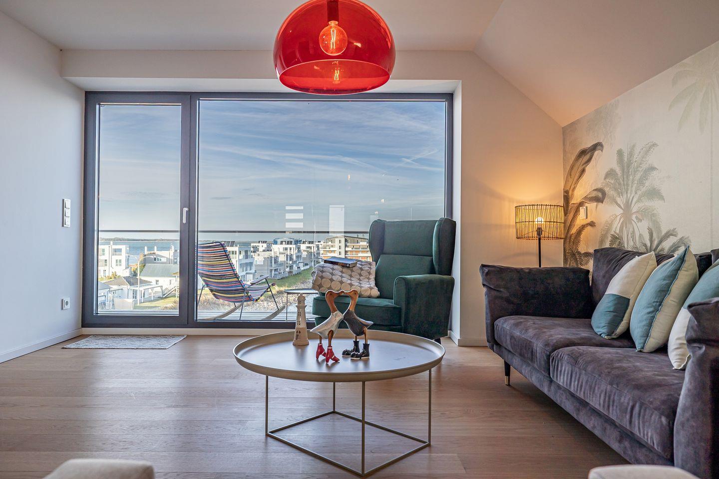 Moderne Maisonettewohnung in Olpenitz mit Meerblick, finnischer Sauna und Balkon für erholsame Urlaubstage.