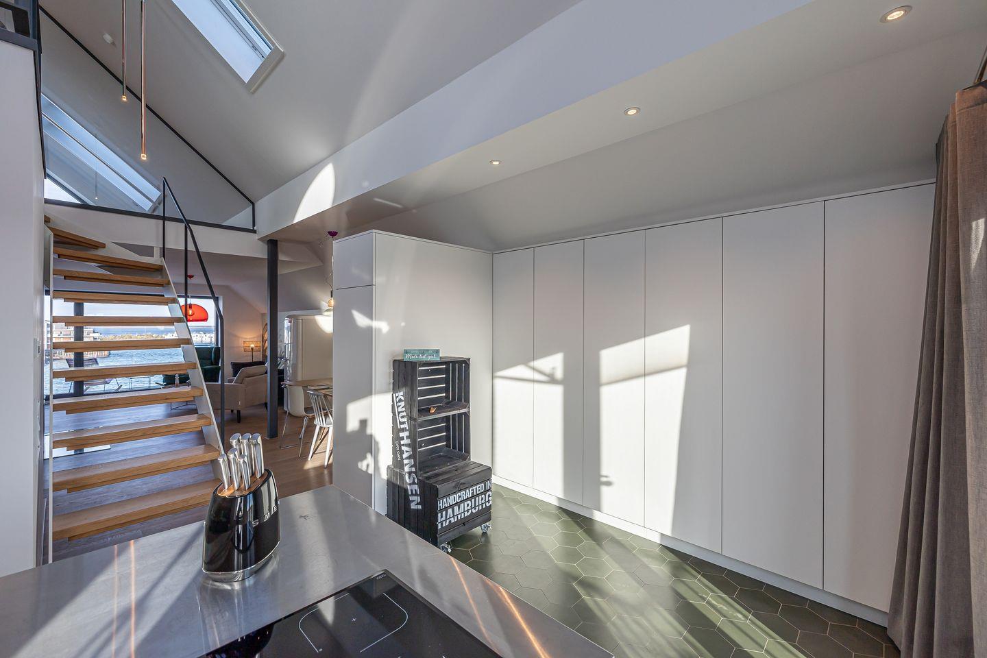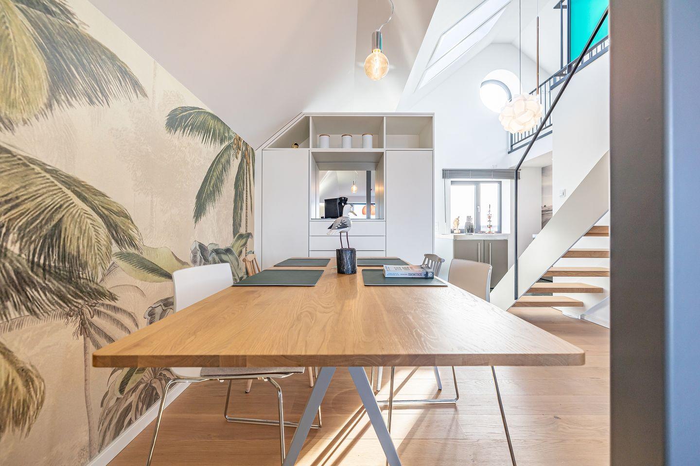 Die moderne Maisonettewohnung „Rooftop Garden 8“ in Olpenitz bietet Dir auf 127 m² Platz für bis zu vier Gäste. Sie überzeugt durch einen wundervollen Meerblick, eine private, finnische Sauna, einen Balkon, einen Kaminofen, WLAN sowie eine hochwertige, offene, voll ausgestattete Küche. Eine Waschmaschine und ein Trockner erleichtern Dir den Aufenthalt. Ein privater Parkplatz befindet sich direkt an der Unterkunft.