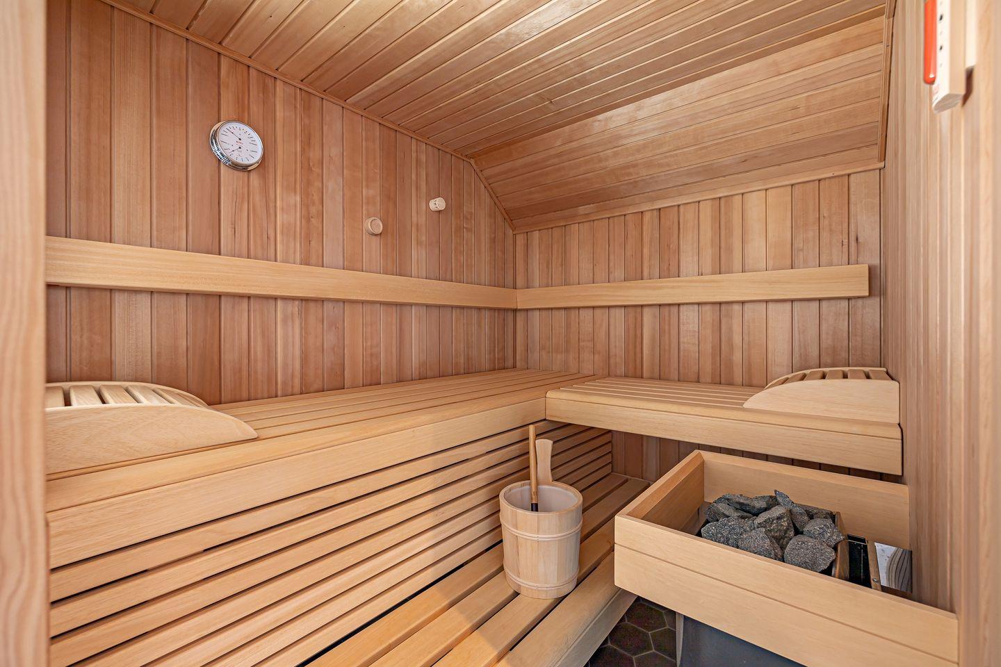 Wellness-Liebhaber profitieren von einer finnischen Sauna, die Dir exklusiv zur Verfügung steht.
