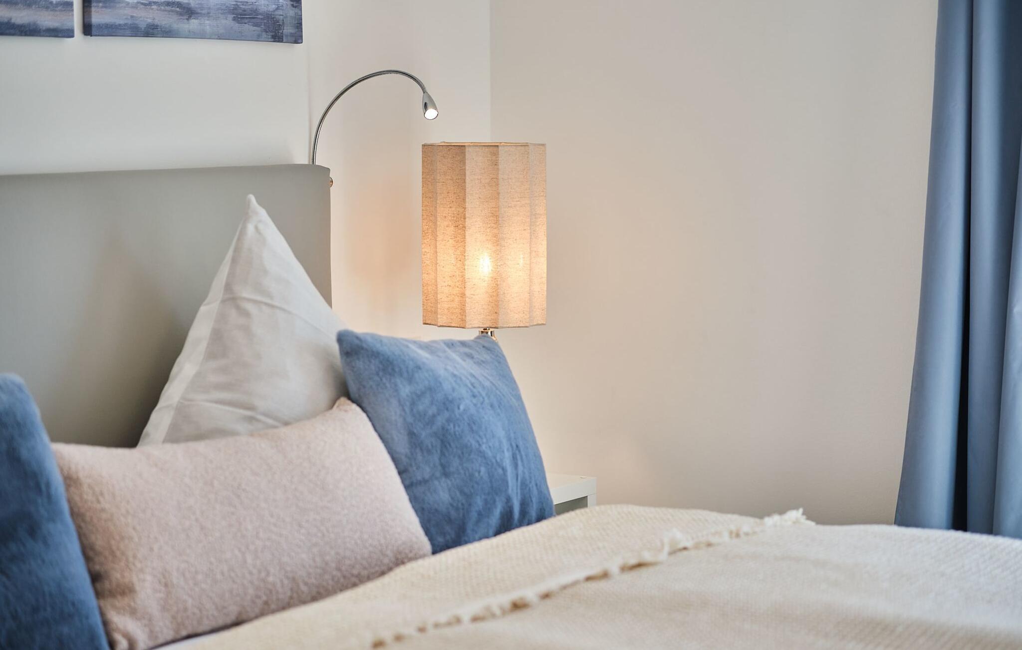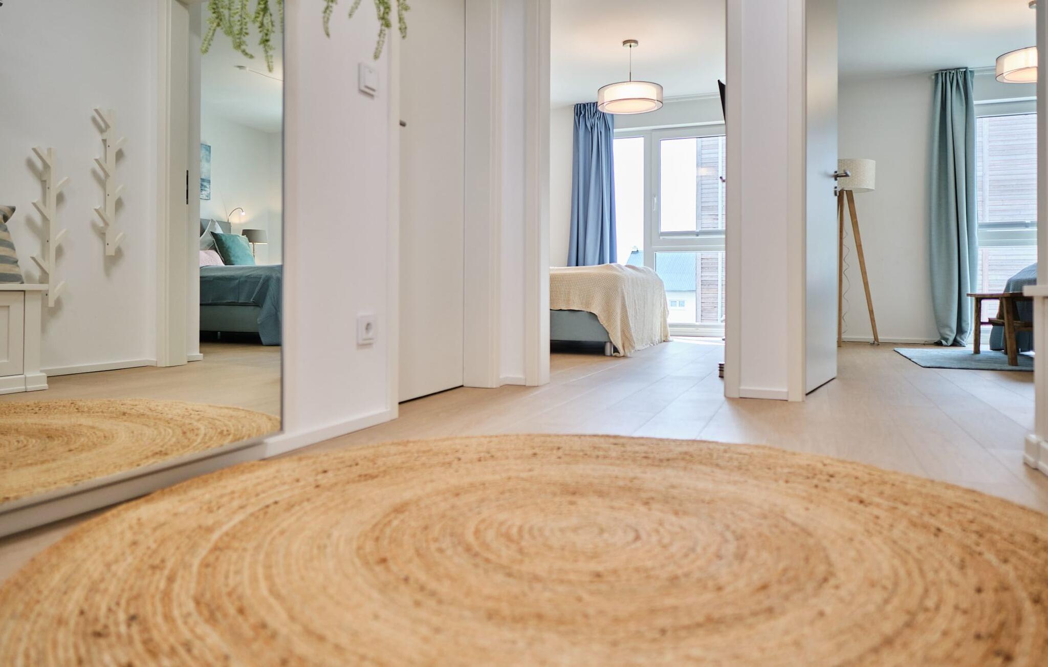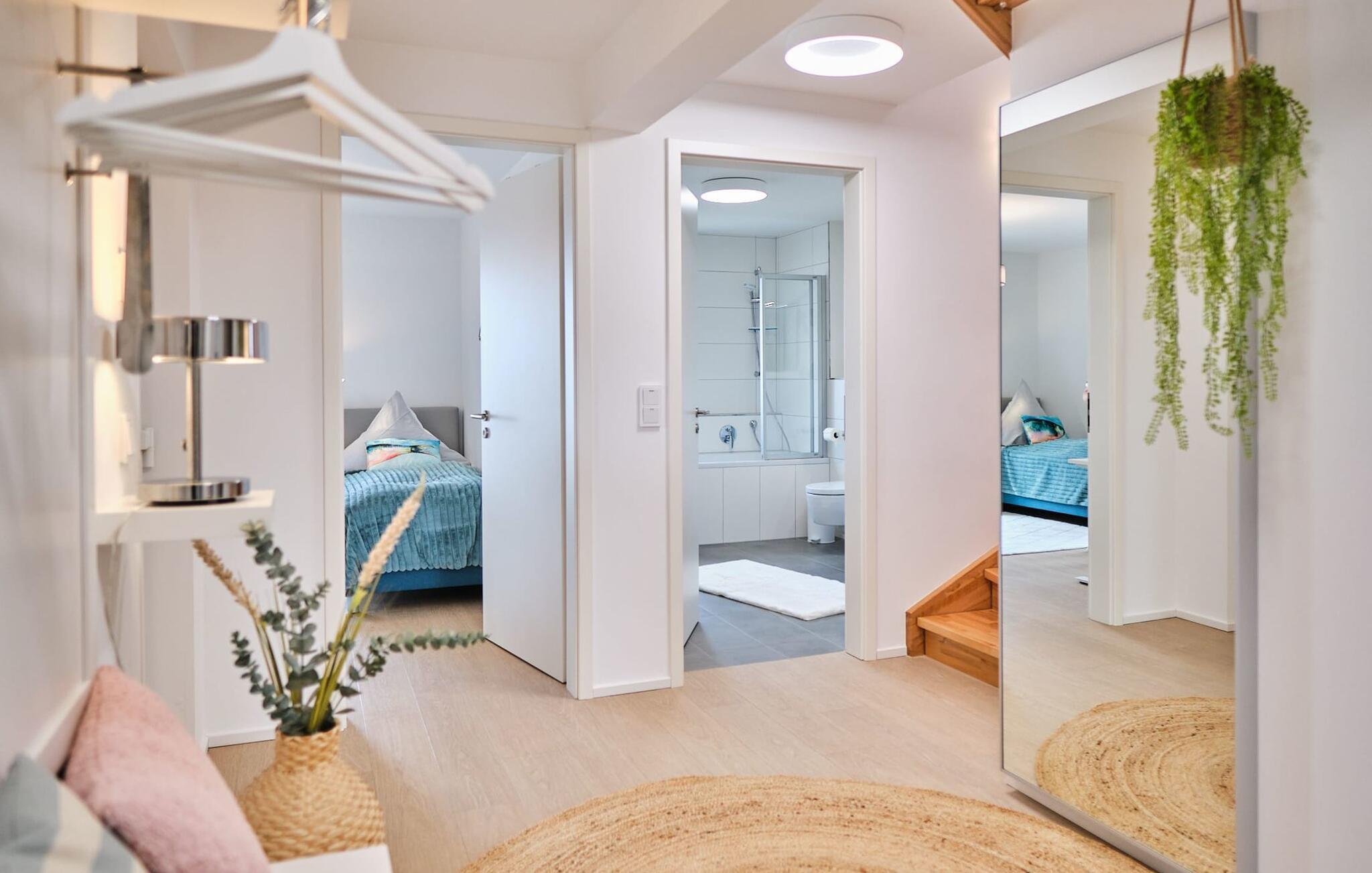 Beim Betreten des ORO MARE im ersten Obergeschoss, beginnt vom ersten Moment an die Entschleunigung. Ihr befindet sich direkt im Ruhebereich der Wohnung. In dieser Etage befinden sich die drei Schlafzimmer der Wohnung mit zwei Doppel Boxspringbett und zwei Einzel-Boxspringbetten. Egal für welches Schlafzimmer ihr euch entscheidet, erholsamer Schlaf ist euch sicher. Die Schlafzimmer sind jeweils mit einem Großen Flatscreen für Unterhaltung ausgestattet und ein Arbeitsplatz mit höhenverstellbarem Schreibtisch gibt es auch.