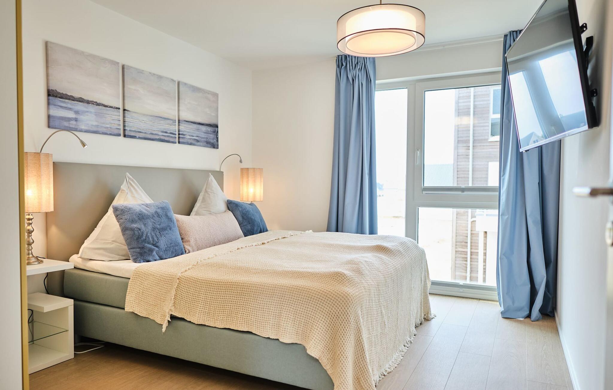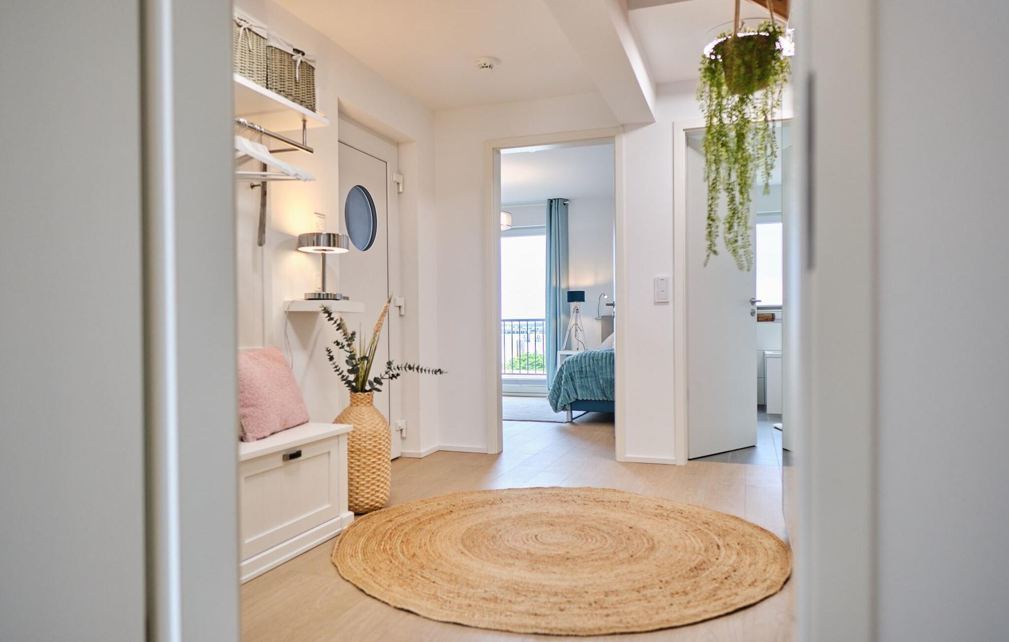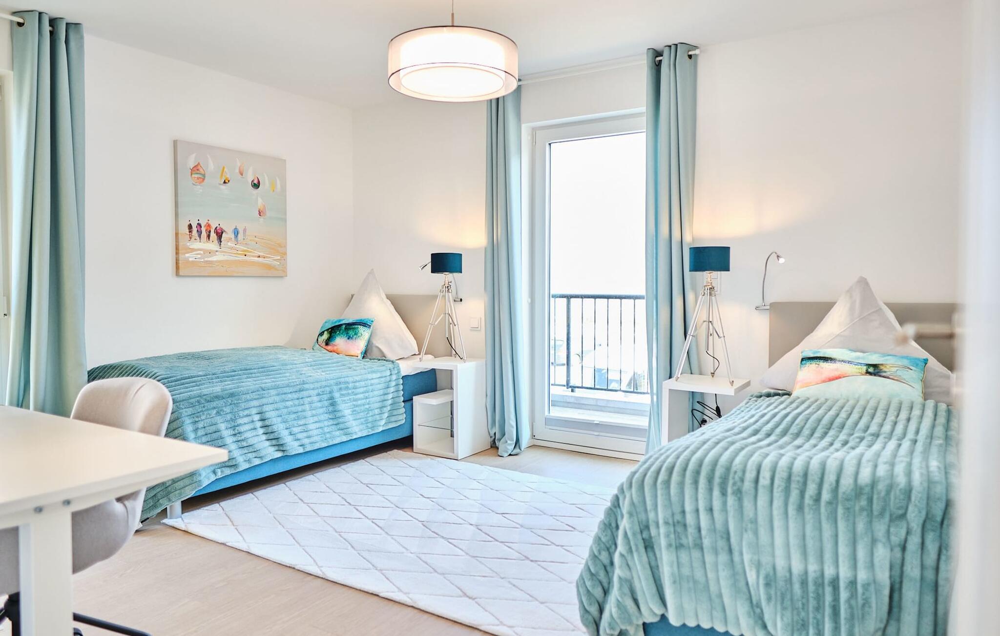 Beim Betreten des ORO MARE im ersten Obergeschoss, beginnt vom ersten Moment an die Entschleunigung. Ihr befindet sich direkt im Ruhebereich der Wohnung. In dieser Etage befinden sich die drei Schlafzimmer der Wohnung mit zwei Doppel Boxspringbett und zwei Einzel-Boxspringbetten. Egal für welches Schlafzimmer ihr euch entscheidet, erholsamer Schlaf ist euch sicher. Die Schlafzimmer sind jeweils mit einem Großen Flatscreen für Unterhaltung ausgestattet und ein Arbeitsplatz mit höhenverstellbarem Schreibtisch gibt es auch.