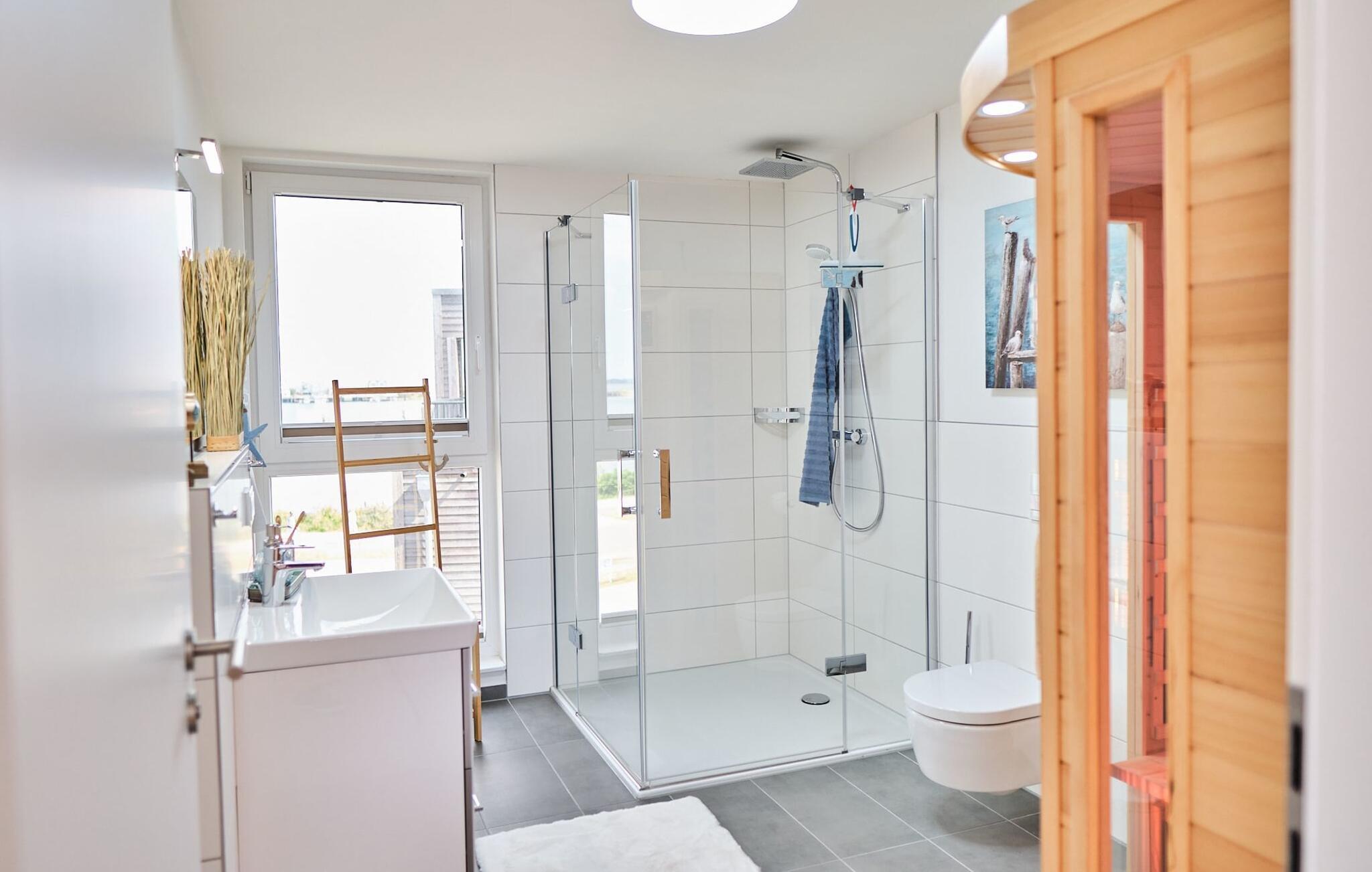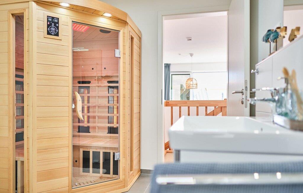 Ein zweites Vollbad mit Wellness Charakter und großzügiger, bodengleicher Panorama Dusche und Infrarot-Sauna rundet das Komplettpaket für einen erholsamen Urlaub ideal ab.