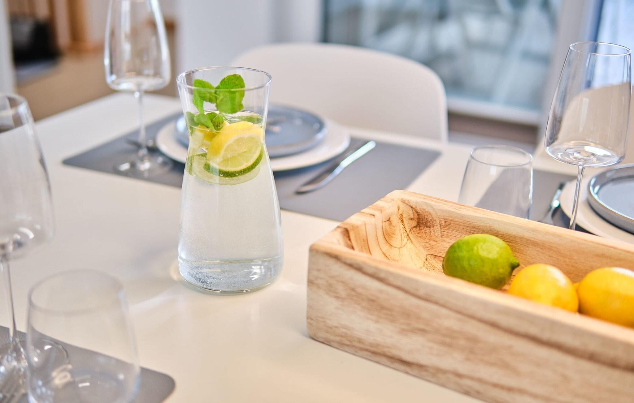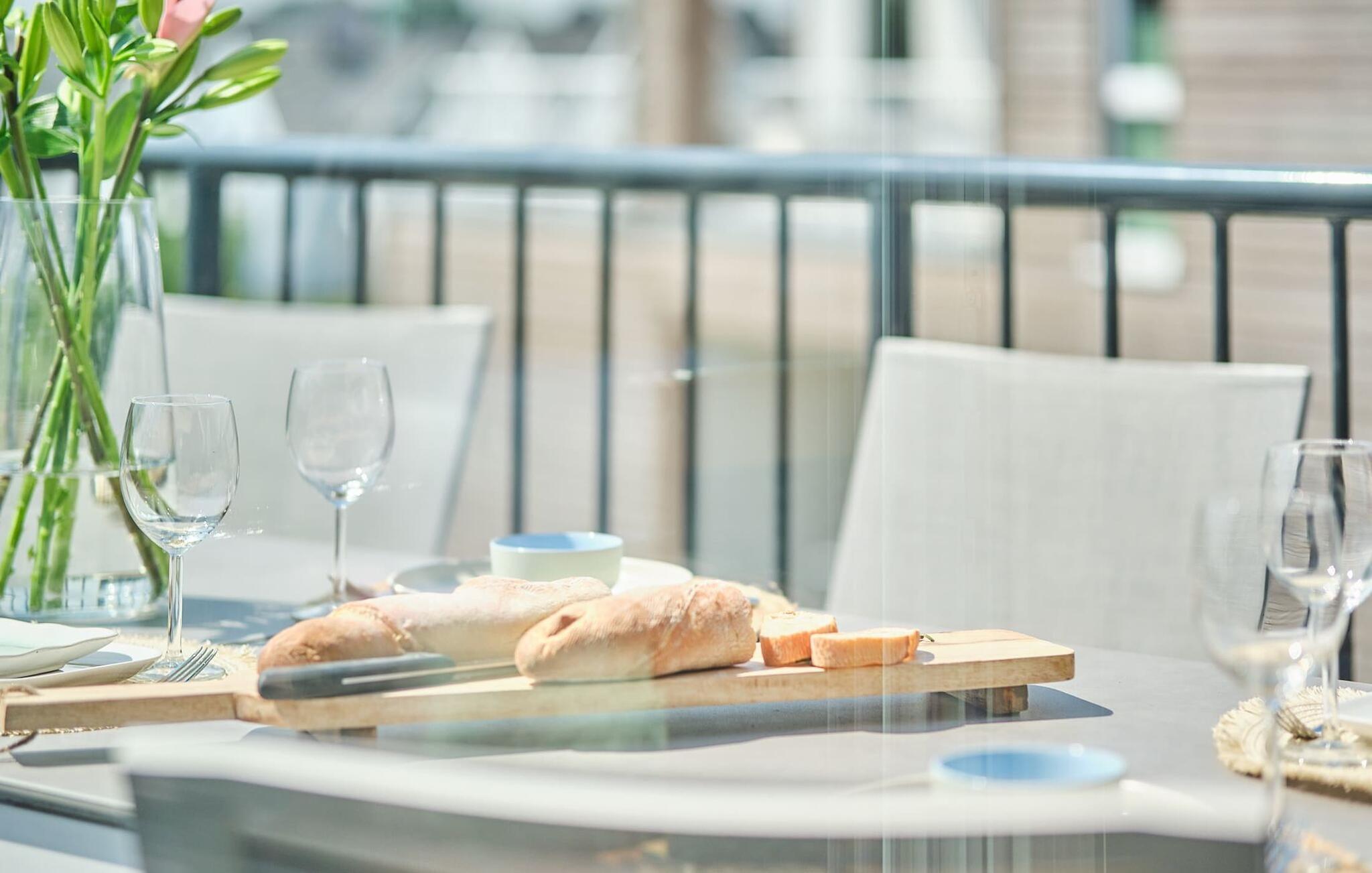Die integrierte Küche ist perfekt und hochwertig ausgestattet. Auf der Terrasse erwarten euch komfortable Terrassenmöbel und ein Grill.
