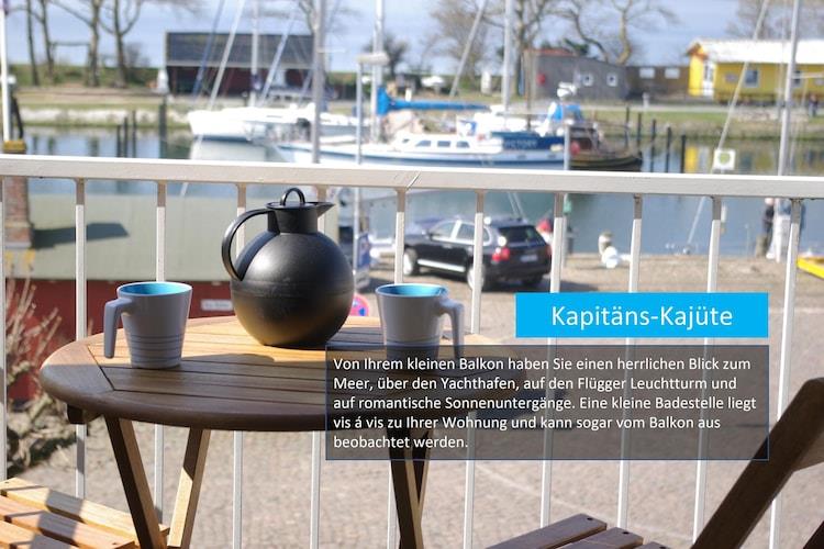 Moderne Ferienwohnung mit Balkon und Blick auf den Yachthafen von Orth auf Fehmarn.