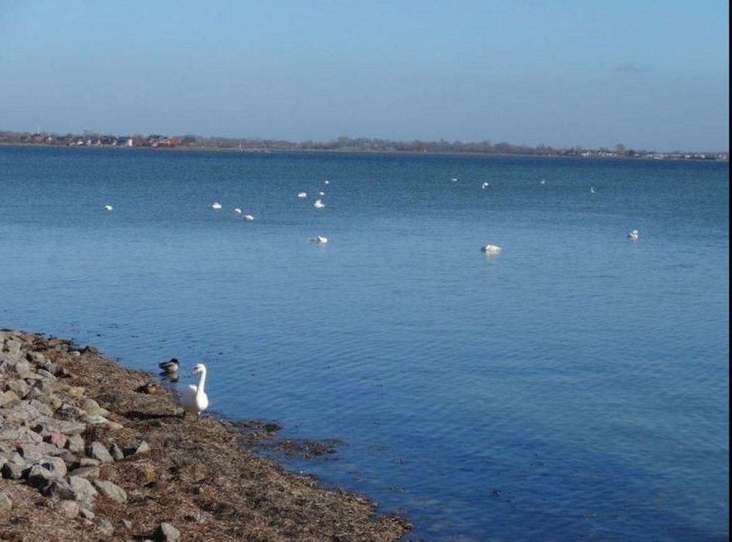 Im Ort direkt in unmittelbarer Nähe der Wohnung befinden sich Restaurants, Cafés, Hafenimbiss, Fahrradverleih und kleine Läden, Surfschule und Surfshops sowie ein Angelkutter. Bade- und Surfmöglichkeiten sind in Orth vorhanden, die Badestrände Flügge und Püttsee sind mit dem Rad oder dem Pkw schnell zu erreichen.