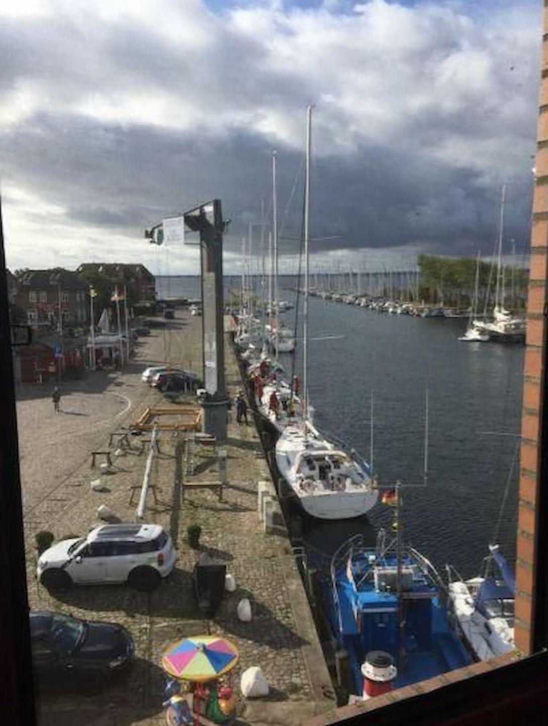 Komfortables Ferienappartement mit Meerblick und Balkon direkt am Hafen von Orth.