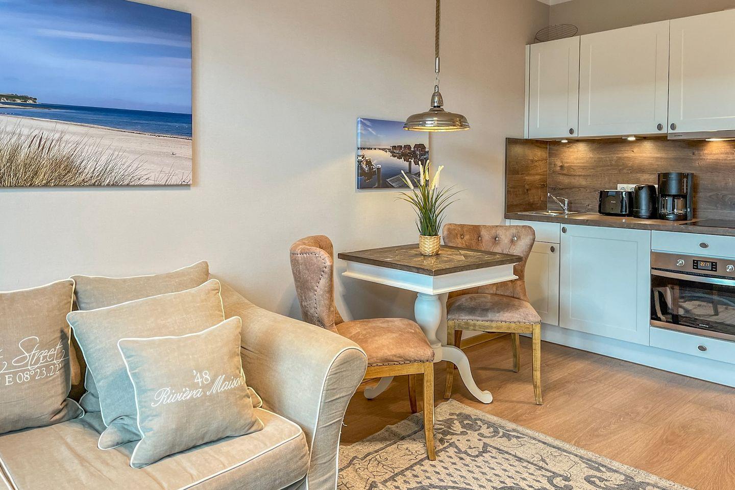 Die Ferienwohnung 47 im Baltischen Hof in Boltenhagen ist eine moderne 2-Zimmer-Wohnung für bis zu zwei Personen mit eigener Sauna..