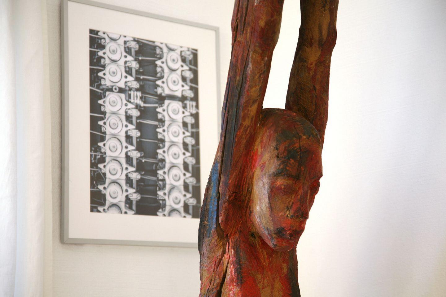 Insgesamt ist die Wohnung hochwertig und wohnlich eingerichtet und mit vielen kleinen Details versehen, die der Wohnung einen eigenen Charakter geben (Holzplastik des Kühlungsborner Bildhauers Wilfried Schröder, Bilder von Max Ernst und Fotografien von Lena Guimont, Sammlung von Kunstbänden und weiterer Literatur).
