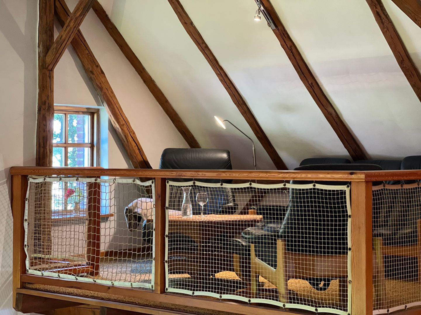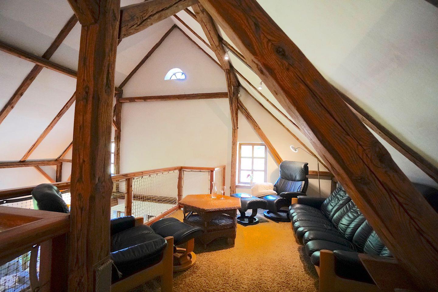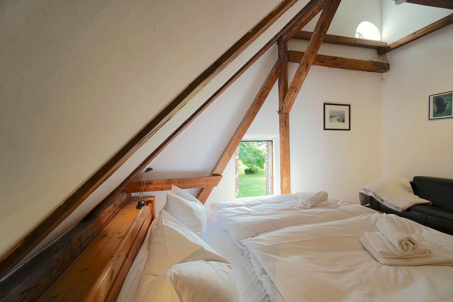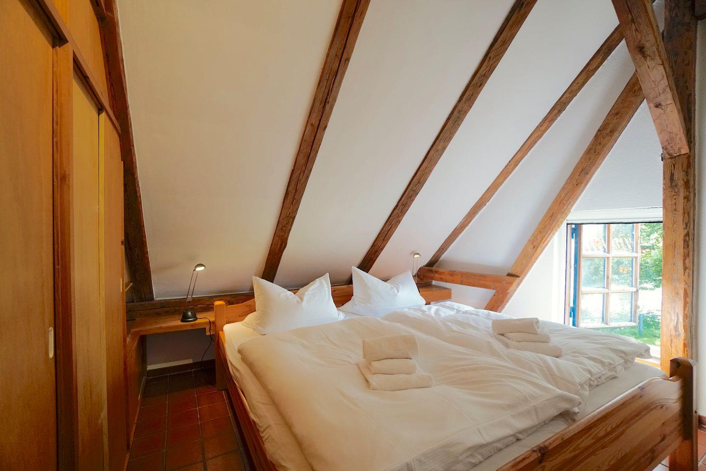 Im Obergeschoss hält die Galerie einen weiteren kleinen Ruhe/Sofabereich vor und zwei der drei Schlafzimmer befinden sich dort. Diese sind liebevoll und nachhaltig eingerichtet und bieten sich optimal an für einen erholsamen Schlaf.