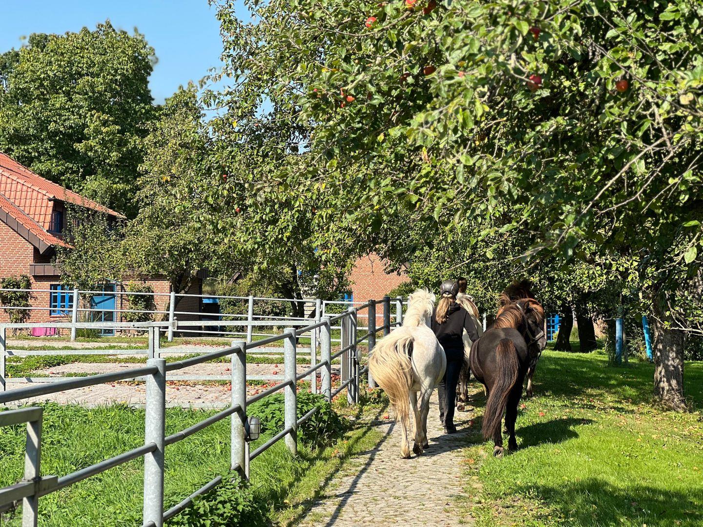 Der perfekte Urlaub für die ganze Familie. Das großzügige Ferienhaus Gandur steht in Mitten des Islandpferdegestüts Osterbyholz, eingebettet in einen großen Garten, mit Karpfenteich, Spielmöglichkeiten, Aussicht auf die Zahlreichen Koppeln und Ställe.