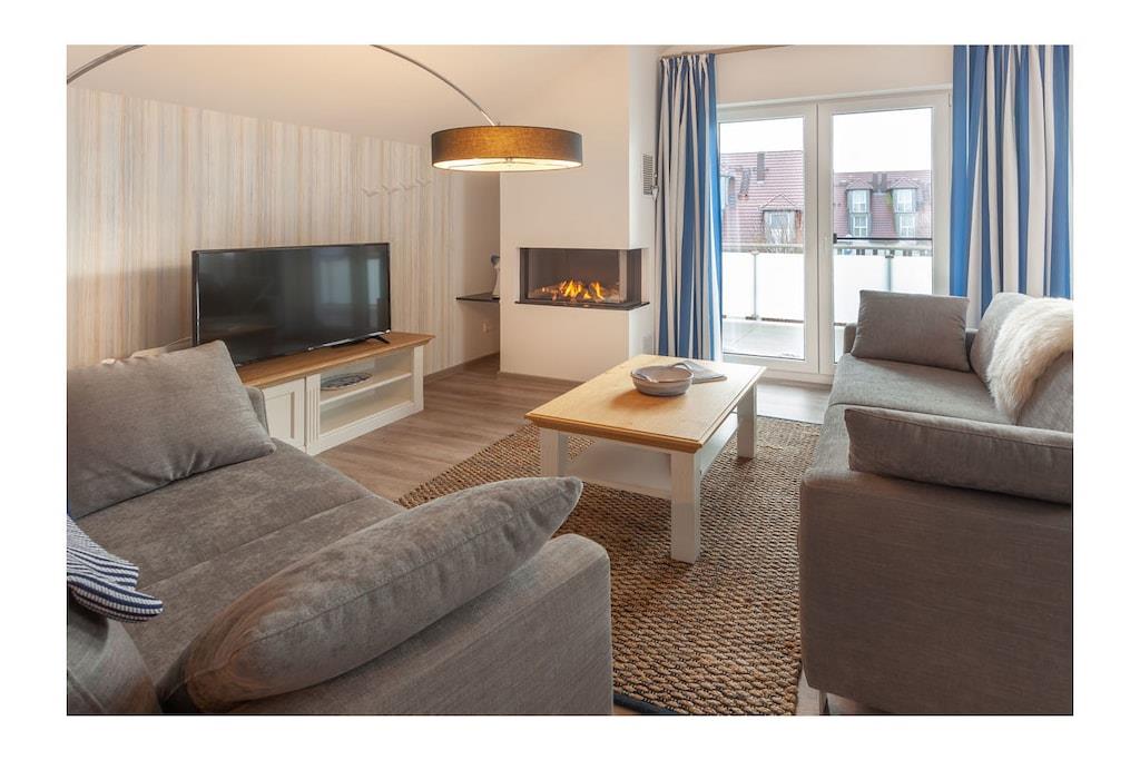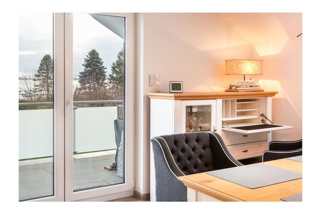 Luxuriöse Ferienwohnung Dreimasterhaus Nr. 5 in Breege mit Sauna, Loggia und Boddenblick für einen unvergesslichen Ostseeurlaub.