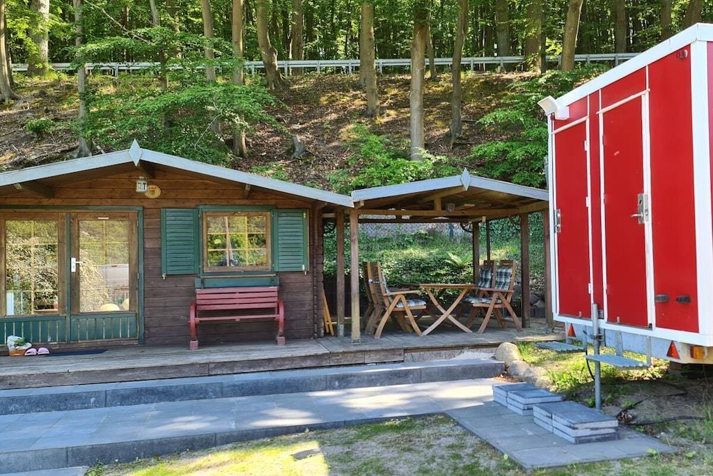 Gemütliches Ferienhaus "Strandbude" am Waldrand in Ostseebad Ahlbeck mit Terrasse und Grill für entspannte Tage.