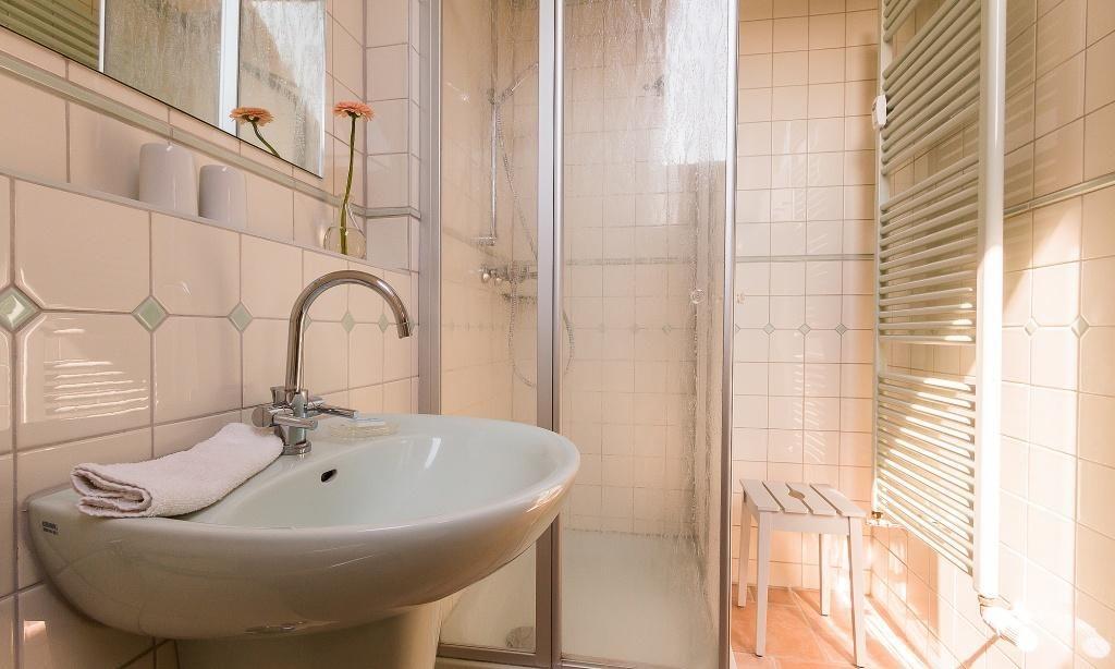 Im Obergeschoss erwartet dich ein freundlicher Wohnraum mit gemütlichem Sofa und TV-Bereich sowie die integrierte Küchenzeile und der Essbereich. Im Dachgeschoss befindet sich eine offene Schlafgalerie mit einem Doppelbett. Das Dachfenster ist zur Seeseite ausgerichtet. Von hier kannst du sogar über die Dächer hinweg einen kleinen Ausblick auf die Ostsee genießen.