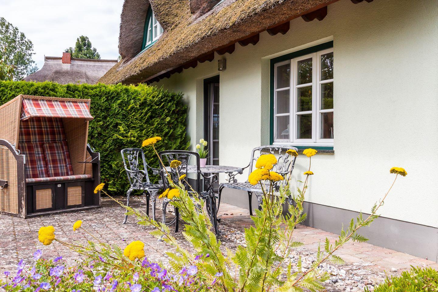 Charmantes Reetdach-Ferienhaus Drömhus in Ahrenshoop mit Garten, Strandkorb und nah am Strand gelegen.