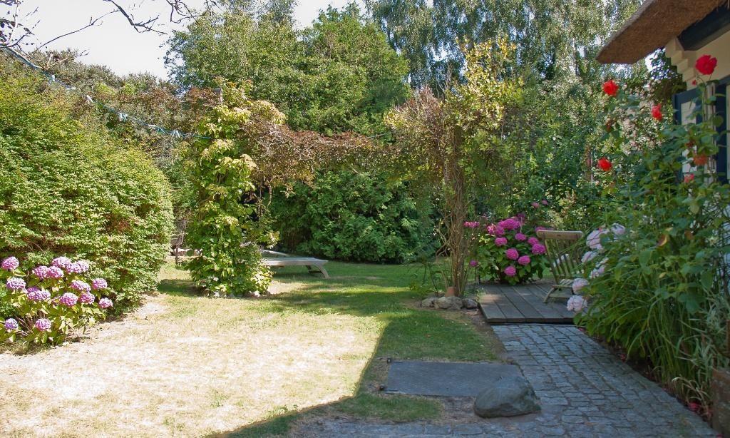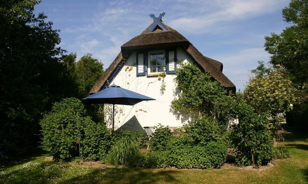 Strandnahes Reetdach-Ferienhaus in ruhiger Lage des Ostseebads Ahrenshoop mit Garten und zwei Terrassen.