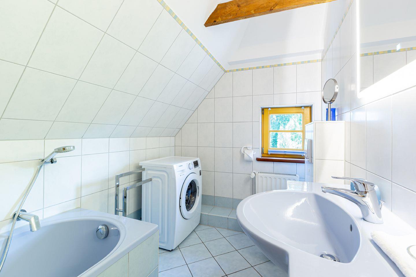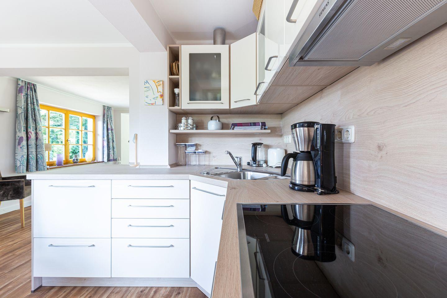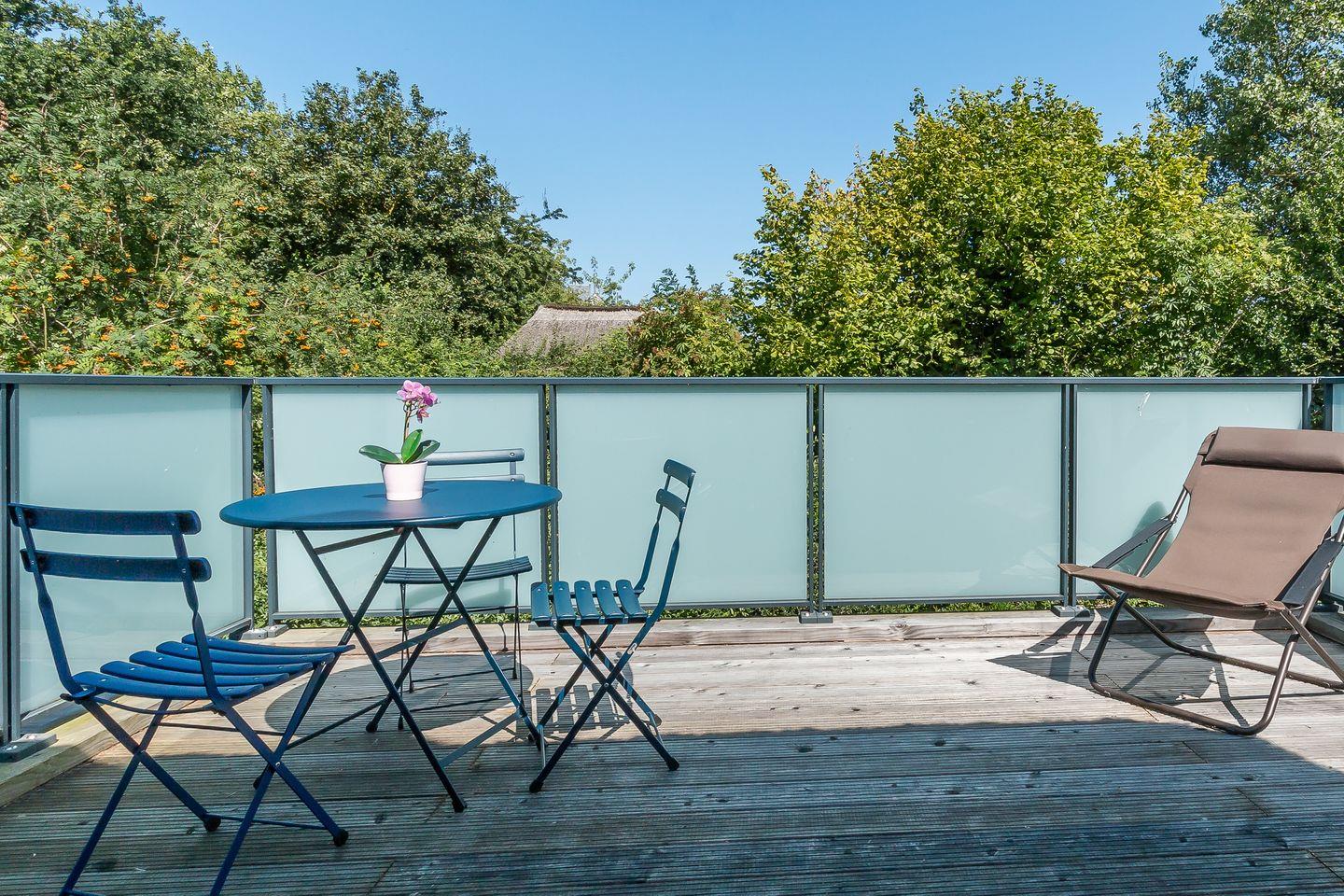 Das individuell eingerichtete Haus mit Reetdach bietet aufgrund seines 1000 Quadratmeter großen Gartens einen ruhigen, idyllischen Rückzugsort für optimale Erholung. Das Grundstück ist rundum von einer gepflegten Hecke umgeben und der geräumige Garten verfügt über ausreichend Parkmöglichkeiten. Zudem lässt sich der Urlaubsaufenthalt auch von der Garten- oder Dachterrasse genießen. Der untere Wohnbereich ist hell und offen gehalten. Dem Küchenbereich mit Sitzecke schließt sich großzügig ein Arbeitsplatz an. Der lichtdurchflutete Wintergarten mit einer gemütlichen Couch lädt zum Lesen, Flimmern oder Verweilen ein. Des Weiteren befindet sich auch ein Schlafzimmer mit einem Einzelbett sowie ein Badezimmer mit einer Dusche und Toilette auf der unteren Etage. Das Obergeschoss verfügt über zwei weitere Schlafzimmer, die jeweils mit einem Doppelbett ausgestattet sind. Einladend ist hier die zur Ostsee gewandte weiträumige Dachterrasse mit Blick auf die wunderschöne Umgebung. Für zusätzlichen Wohnkomfort sorgt ein zweites Badezimmer mit einer Badewanne, Toilette und Waschmaschine.