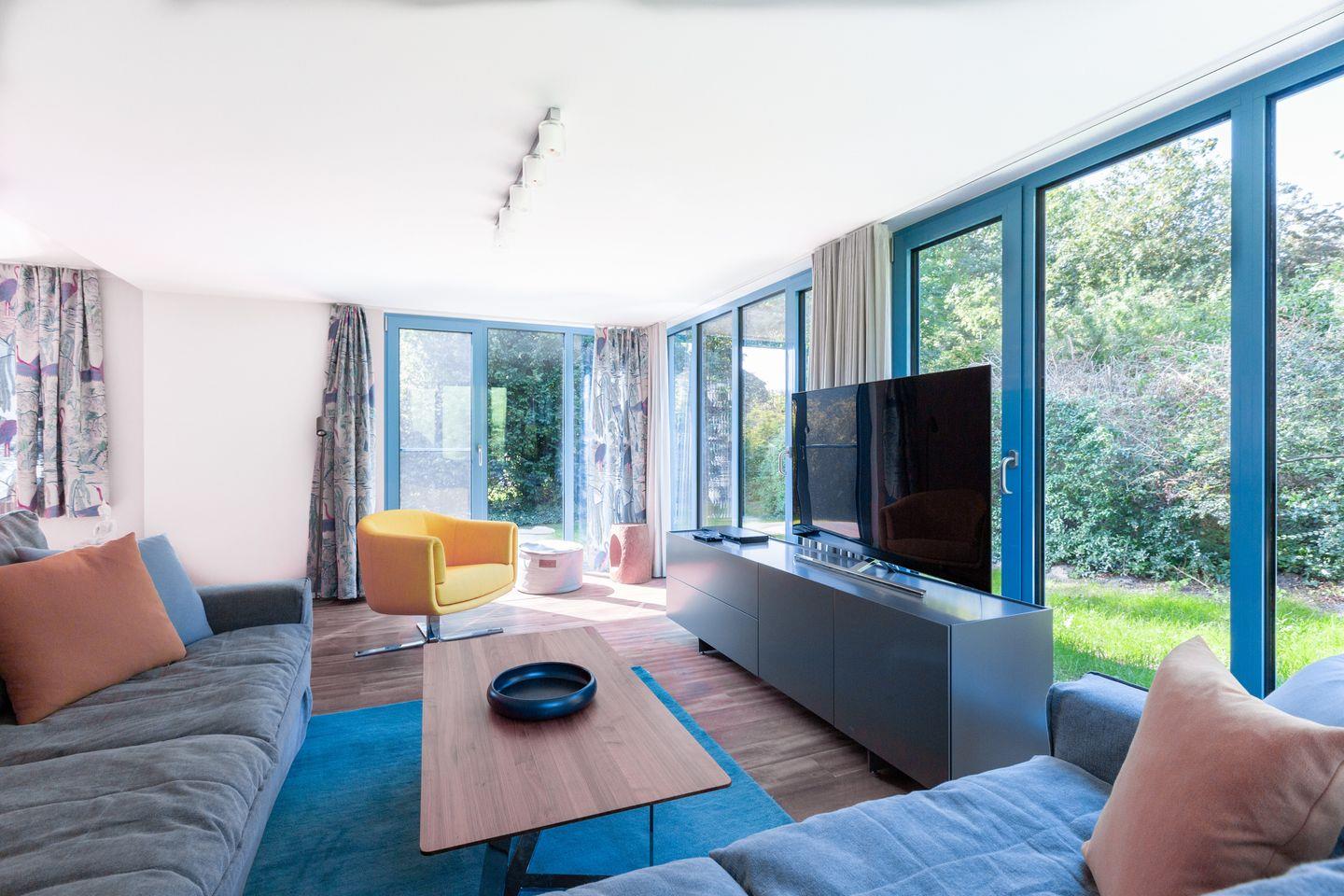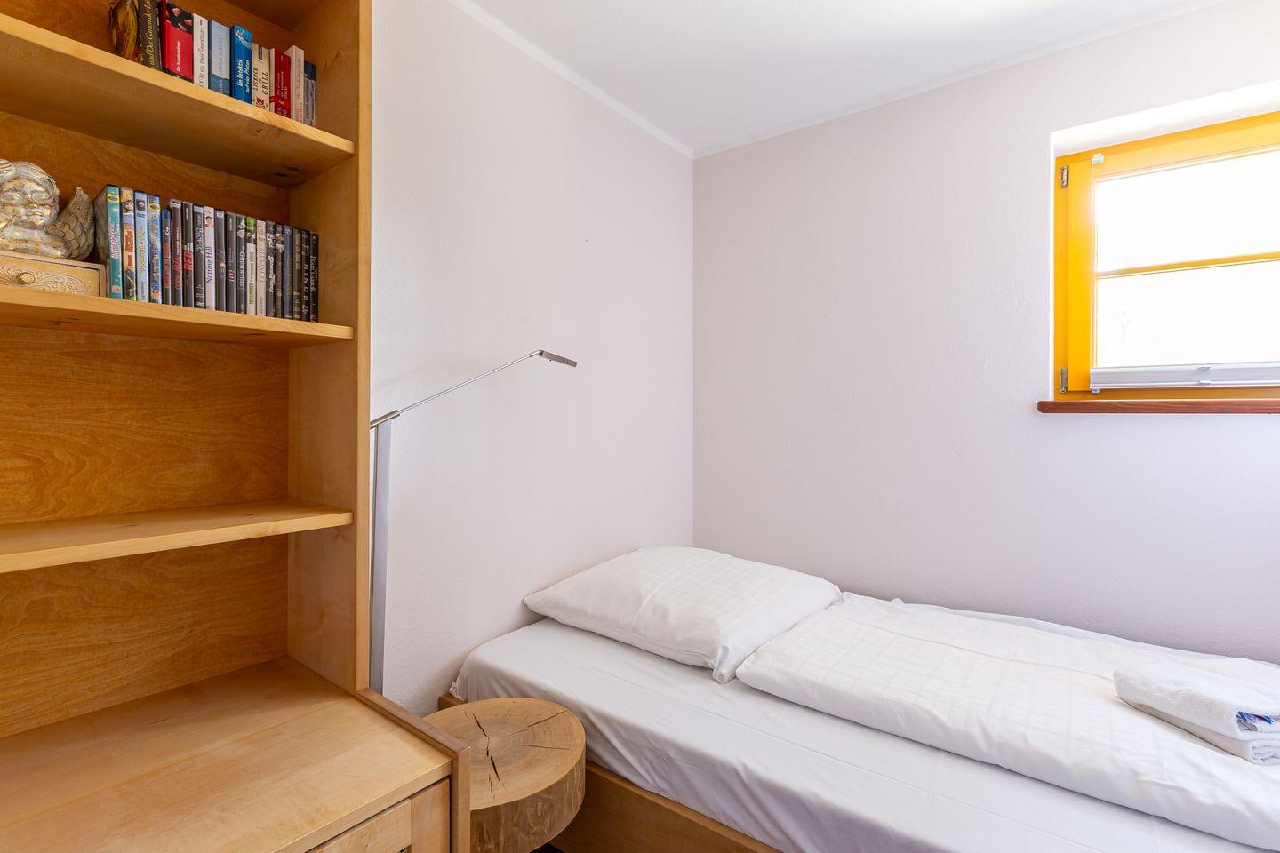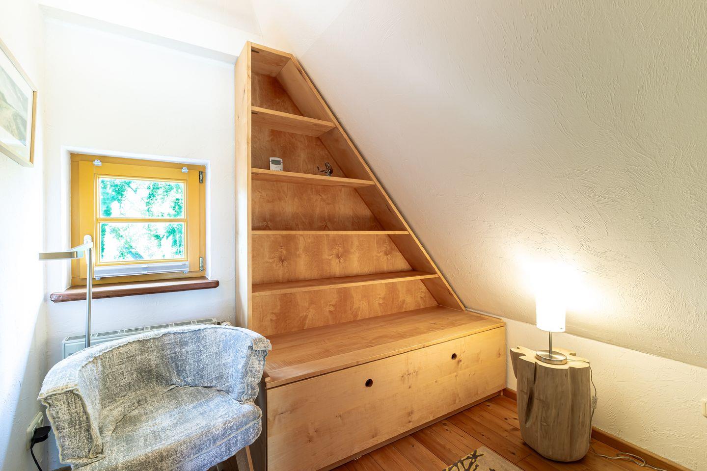 Das individuell eingerichtete Haus mit Reetdach bietet aufgrund seines 1000 Quadratmeter großen Gartens einen ruhigen, idyllischen Rückzugsort für optimale Erholung. Das Grundstück ist rundum von einer gepflegten Hecke umgeben und der geräumige Garten verfügt über ausreichend Parkmöglichkeiten. Zudem lässt sich der Urlaubsaufenthalt auch von der Garten- oder Dachterrasse genießen. Der untere Wohnbereich ist hell und offen gehalten. Dem Küchenbereich mit Sitzecke schließt sich großzügig ein Arbeitsplatz an. Der lichtdurchflutete Wintergarten mit einer gemütlichen Couch lädt zum Lesen, Flimmern oder Verweilen ein. Des Weiteren befindet sich auch ein Schlafzimmer mit einem Einzelbett sowie ein Badezimmer mit einer Dusche und Toilette auf der unteren Etage. Das Obergeschoss verfügt über zwei weitere Schlafzimmer, die jeweils mit einem Doppelbett ausgestattet sind. Einladend ist hier die zur Ostsee gewandte weiträumige Dachterrasse mit Blick auf die wunderschöne Umgebung. Für zusätzlichen Wohnkomfort sorgt ein zweites Badezimmer mit einer Badewanne, Toilette und Waschmaschine.