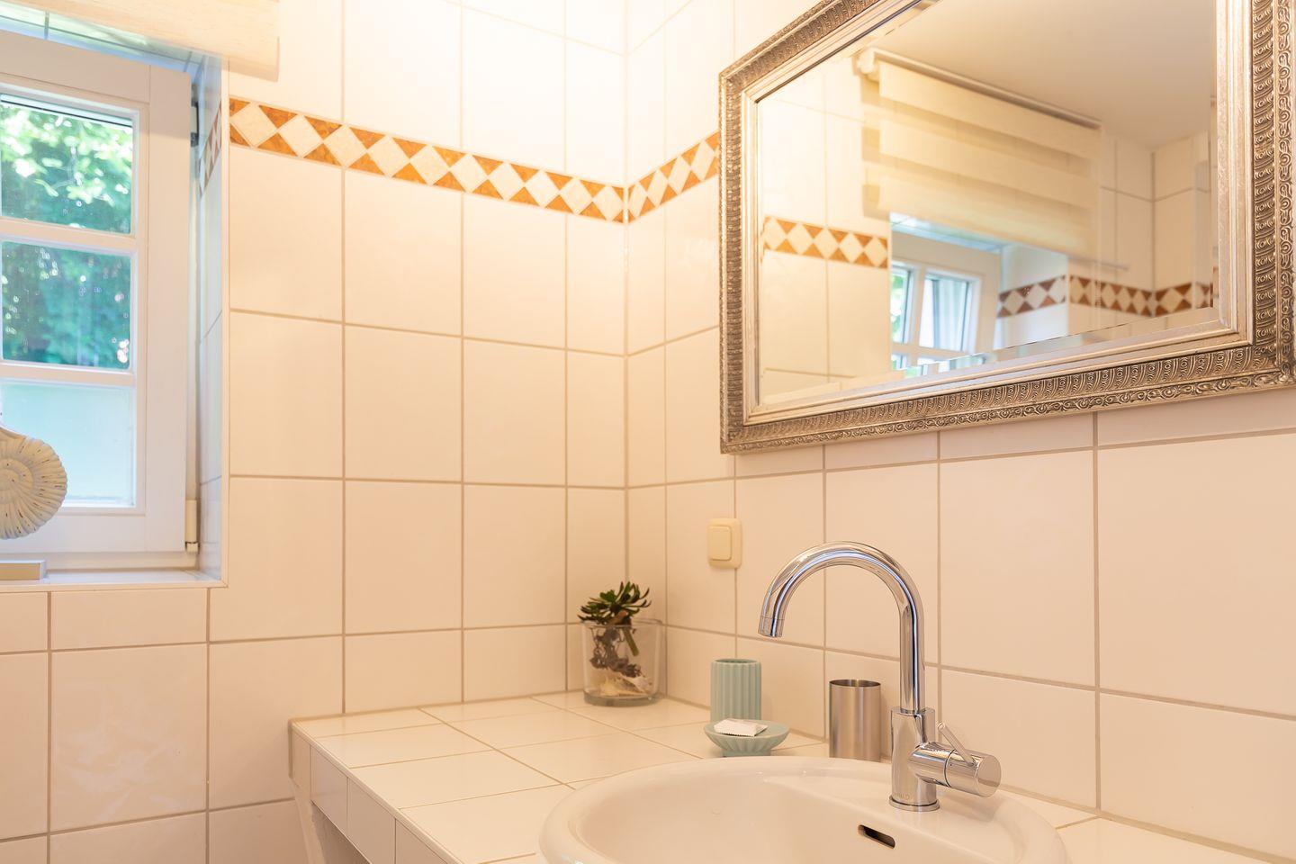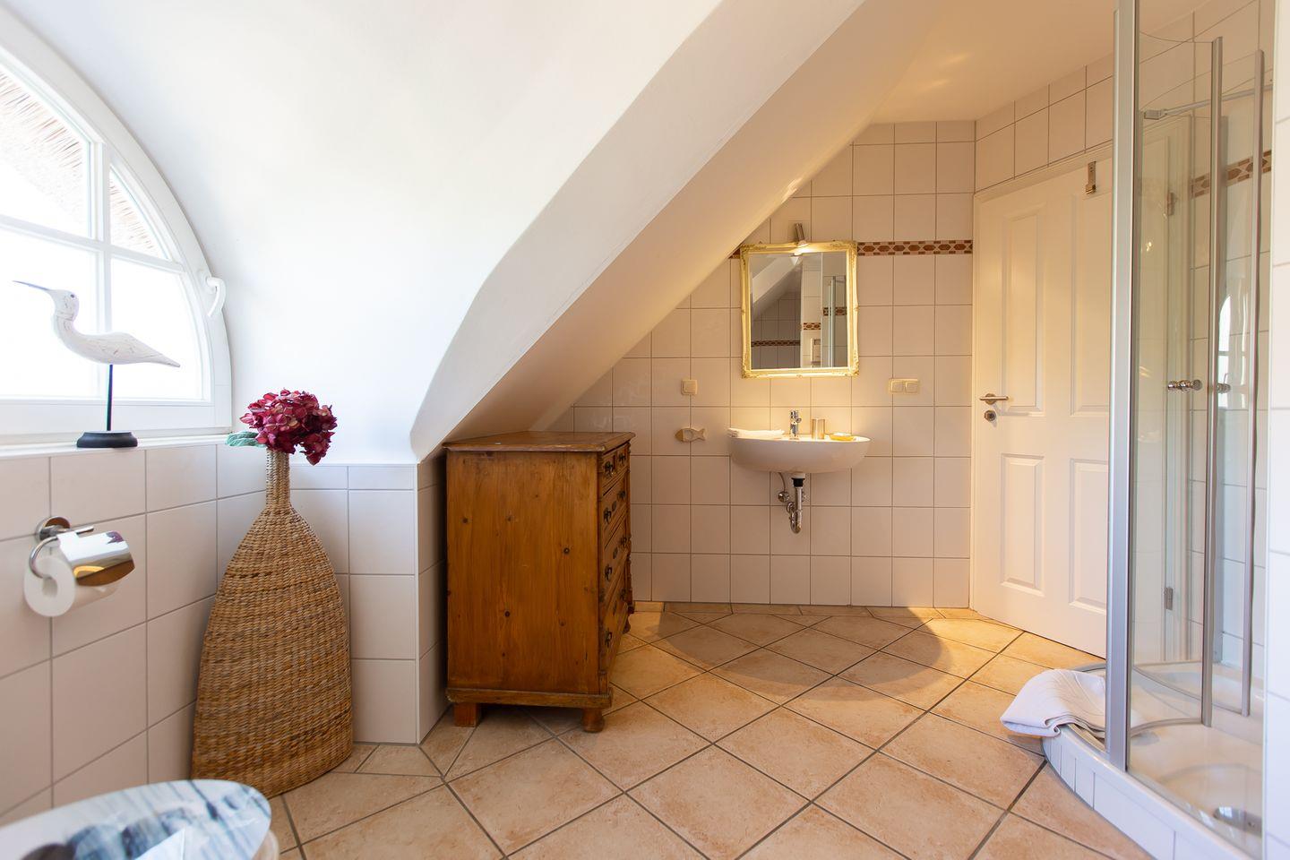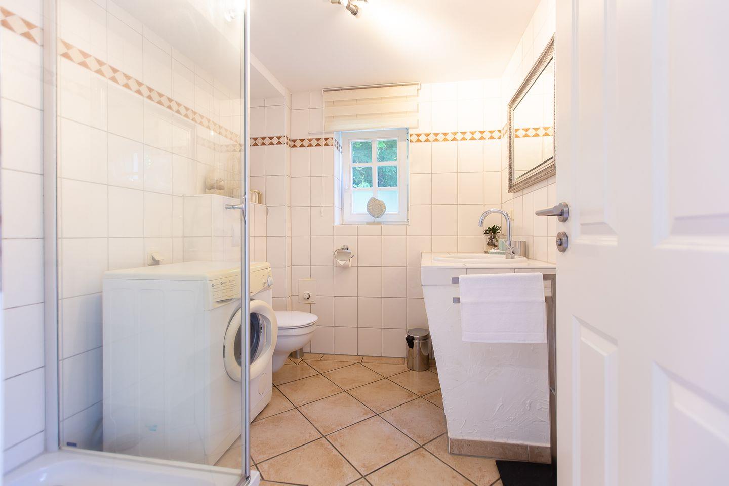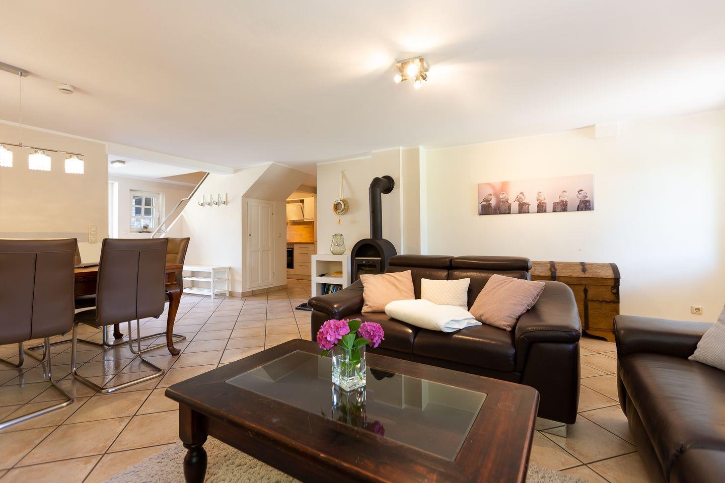 Im Erdgeschoss erwartet dich der Wohnraum mit einer gemütlichen Sitzecke am Kaminofen. Der große Esstisch ist direkt im Wohnbereich integriert und bietet ausreichend Platz für die ganze Familie. Die Küche befindet sich separat und lässt beim Kochen keine Wünsche offen. Weiterhin befindet sich auf der unteren Etage ein Bad mit Dusche/WC. Das Obergeschoss beherbergt zwei Schlafzimmer, die jeweils mit Doppelbetten ausgestattet sind. Auch das Hauptbadezimmer befindet sich hier, dass mit einer Dusche/WC, einer Badewanne und einer kleinen Sauna für zusätzlichen Wohnkomfort sorgt.