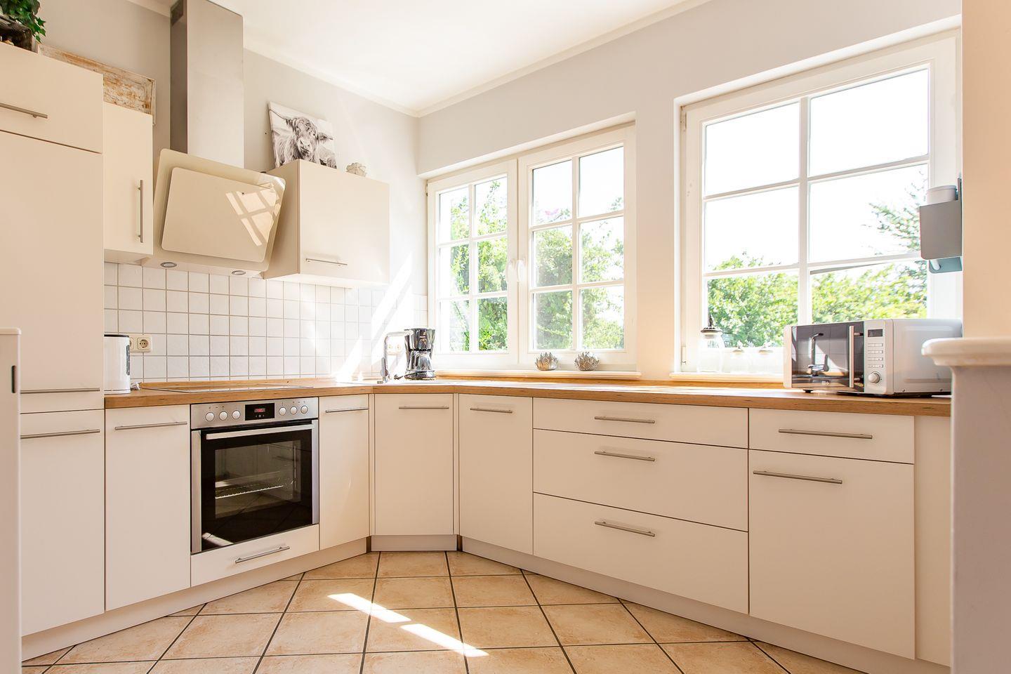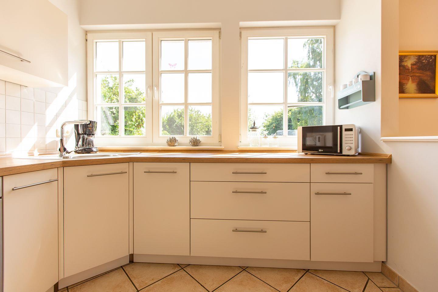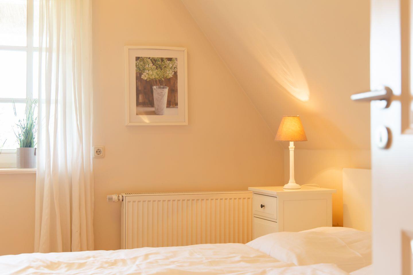 Im Erdgeschoss erwartet dich der großzügige Wohnraum mit einer gemütlichen Sitzecke am Kaminofen. Der große Esstisch ist im Wohnbereich integriert und bietet ausreichend Platz für die ganze Familie. Die offen gestaltete Küche befindet sich angrenzend am Essbereich und lässt beim Kochen keine Wünsche offen. Weiterhin befindet sich auf der unteren Etage ein Bad mit Dusche/WC. Das Obergeschoss beherbergt zwei Schlafzimmer, die jeweils mit Doppelbetten ausgestattet sind. Aus einem der Schlafzimmer genießt du sogar einen kleinen Ausblick auf den Bodden. Weiterhin schließt sich das Bad/WC mit Dusche und Badewanne an.