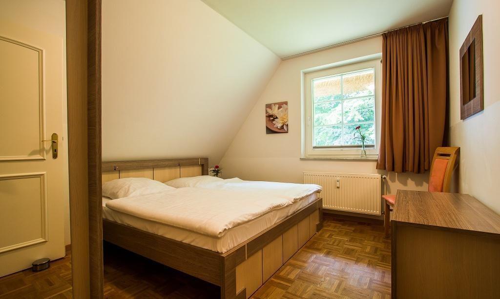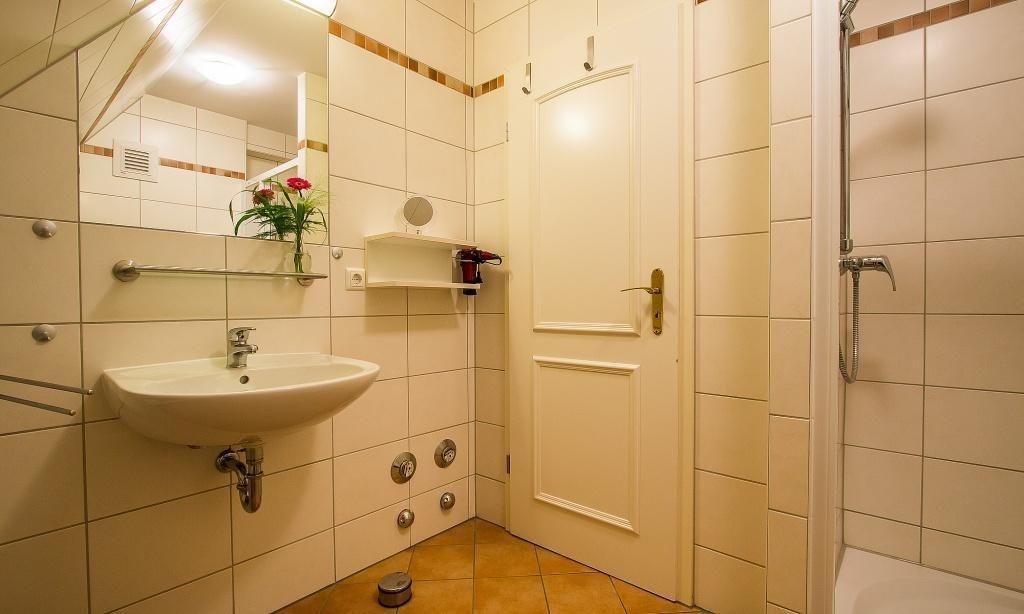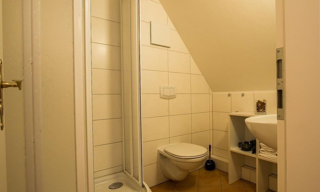 In der Obergeschoss-Wohnung empfängt dich der Wohnraum mit einer gemütlichen Sitzecke. Von hier aus gelangst du auch direkt auf den Balkon und genießt den Blick ins Grüne. Die komfortable Küchenzeile mit Essbereich ist direkt integriert und schafft einen offenen Wohncharakter. Ein Schlafzimmer befindet sich ebenfalls auf dieser Etage und ist mit einem Doppelbett und großzügigen Kleiderschrank ausgestattet. Separat angeschlossen ist das Bad mit Dusche/WC. Über die Holztreppe gelangst du ins Dachgeschoss, dass über ein zweites Schlafzimmer mit Doppelbett sowie ein zweites Bad mit Dusche/WC verfügt. Das Sofa im Schlafraum dient zudem als Aufbettung für eine zusätzliche Person.