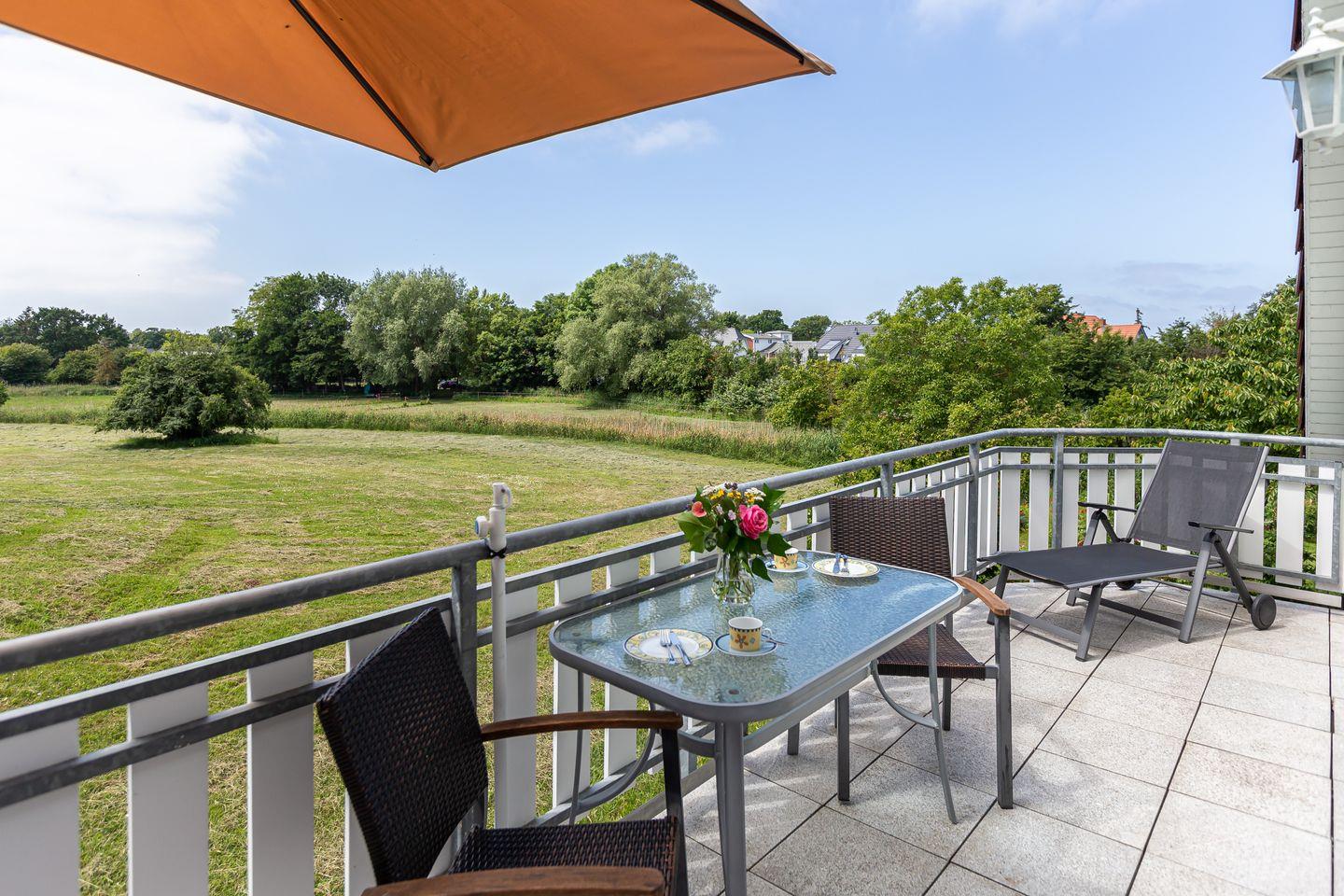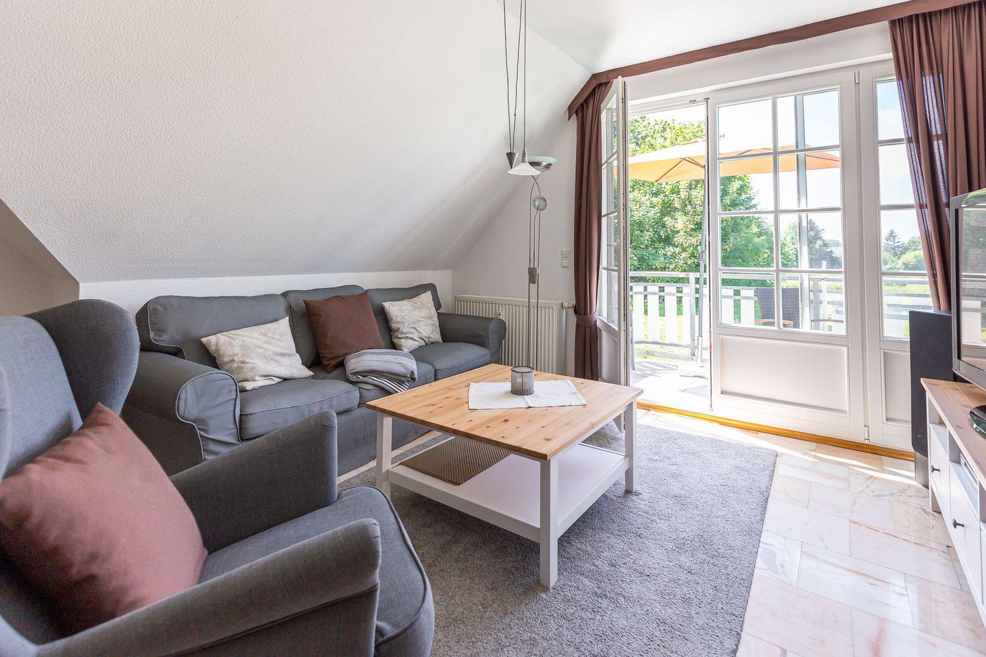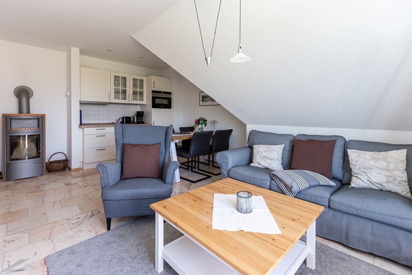 Charmante Ferienwohnung in Ahrenshoop mit Kamin, Balkon und Nähe zum Strand für erholsamen Urlaub an der Ostsee.