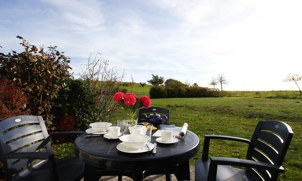 Zur Ferienwohnung gehört eine Steinterasse mit traumhaften Blick auf die Wiesen bis zum Saaler Bodden. Hier lässt es sich herrlich entspannen und die Seele baumeln. Außerdem steht dir ein PKW-Stellplatz zur Verfügung.