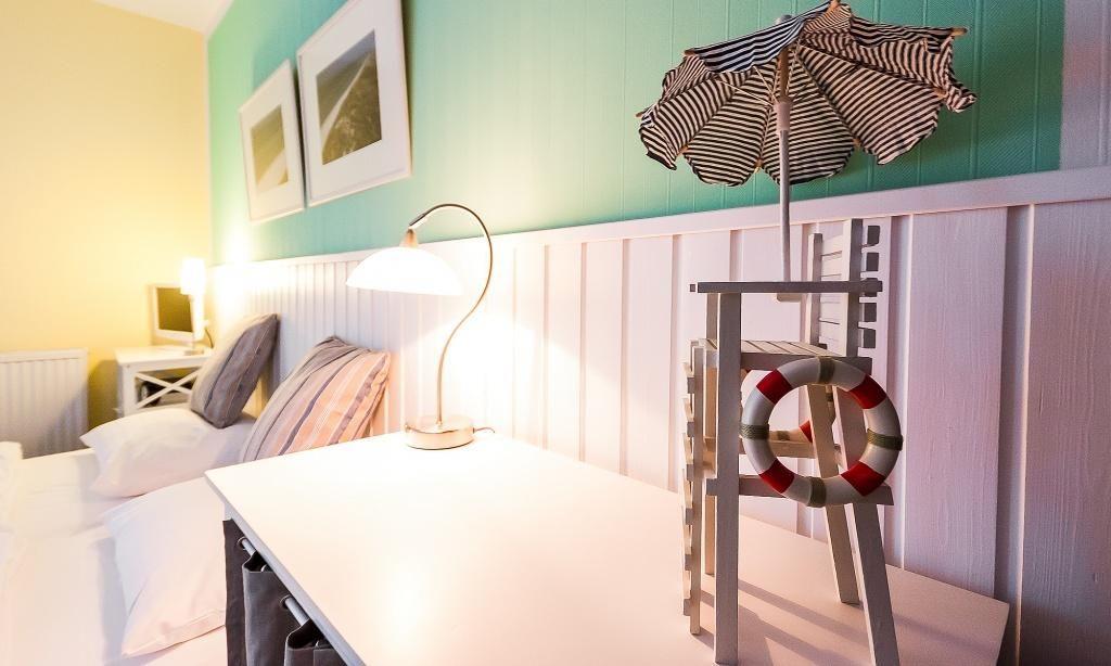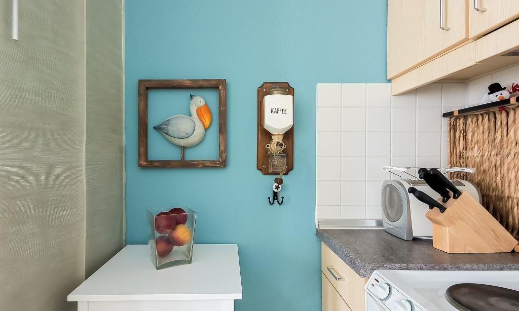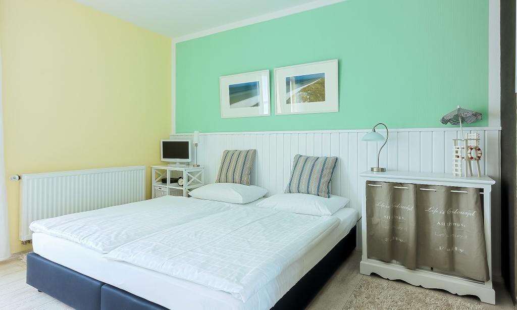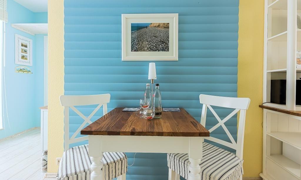 Die individuell eingerichtete Erdgeschosswohnung empfängt dich mit dem einladenden und kombinierten Wohn- und Schlafraum. Die Küchenzeile ist unmittelbar integriert, ebenso die gemütliche Relax-Ecke und der Essbereich. Der liebliche Einrichtungsstil mit den maritimen Farben passt herrlich zur strandnahen Lage der Ostsee. Ein Bad mit Dusche/WC rundet die perfekte Wohnung für zwei ab.